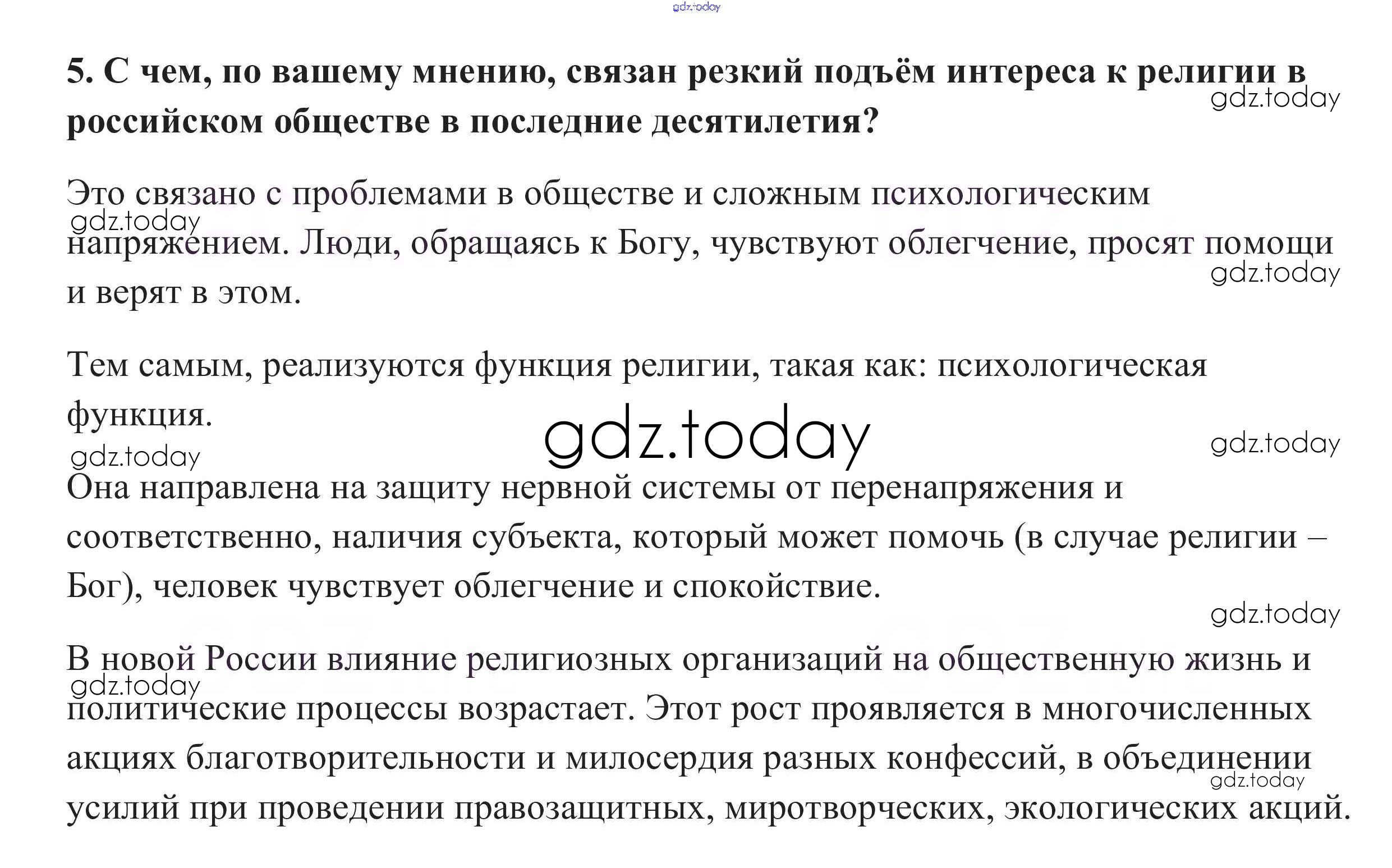 На страницах сайта gdz.today вы найдете учебный и вспомогательный материал, направленный на улучшения знаний школьной программы. ГДЗ - онлайн мир знаний Вопросы для самопроверки §14. Религия и религиозные организации 5 Учебнику по Обществознанию для 10 класса Боголюбов, Аверьянов Базовый уровень Просвещение 2015