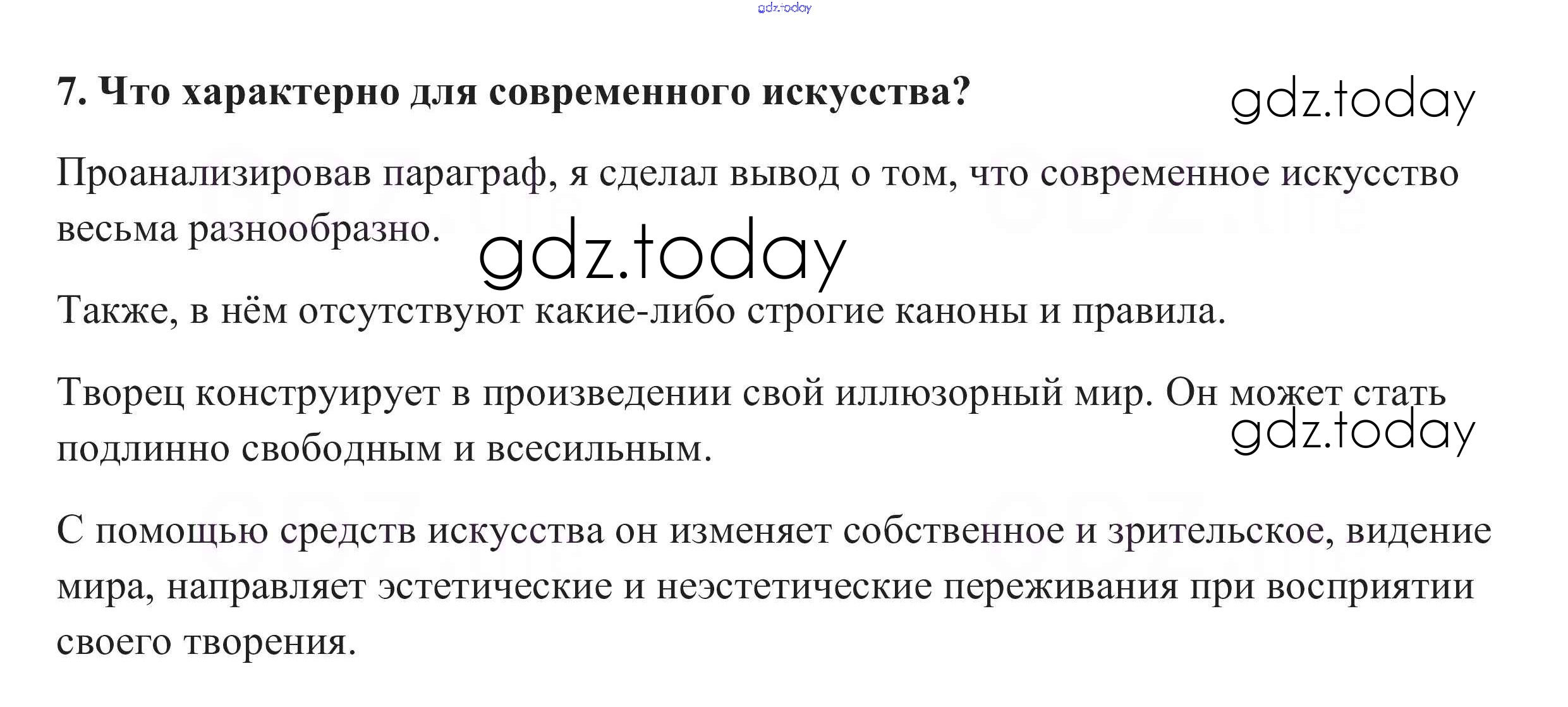 На страницах сайта gdz.today вы найдете учебный и вспомогательный материал, направленный на улучшения знаний школьной программы. ГДЗ - онлайн мир знаний Вопросы для самопроверки §15. Искусство 7 Учебнику по Обществознанию для 10 класса Боголюбов, Аверьянов Базовый уровень Просвещение 2015