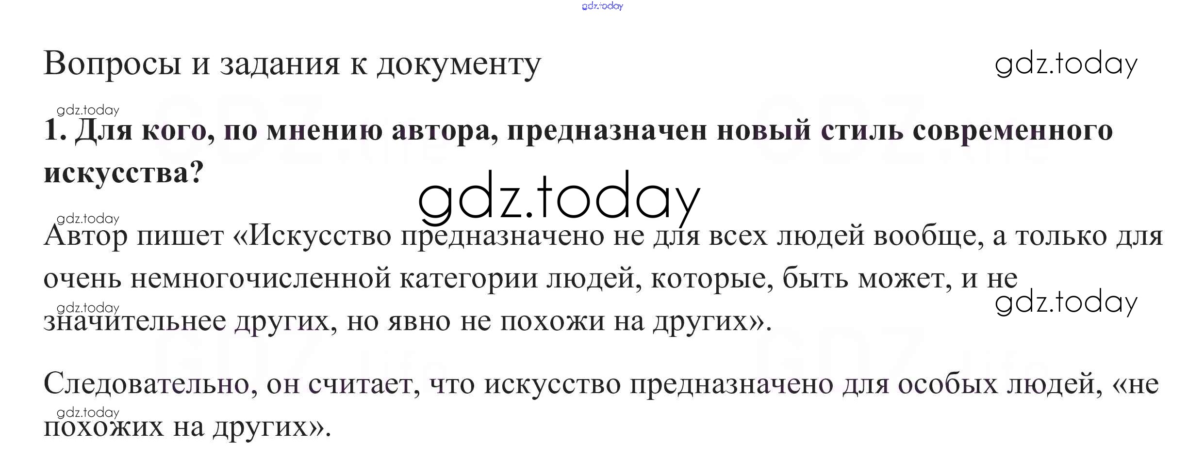 На страницах сайта gdz.today вы найдете учебный и вспомогательный материал, направленный на улучшения знаний школьной программы. ГДЗ - онлайн мир знаний Вопросы и задания к документу §15. Искусство 1 Учебнику по Обществознанию для 10 класса Боголюбов, Аверьянов Базовый уровень Просвещение 2015
