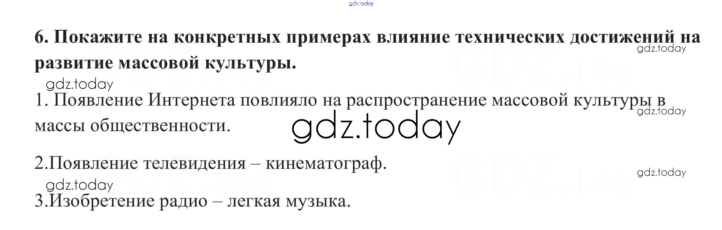 На страницах сайта gdz.today вы найдете учебный и вспомогательный материал, направленный на улучшения знаний школьной программы. ГДЗ - онлайн мир знаний Вопросы для самопроверки §16. Массовая культура 6 Учебнику по Обществознанию для 10 класса Боголюбов, Аверьянов Базовый уровень Просвещение 2015