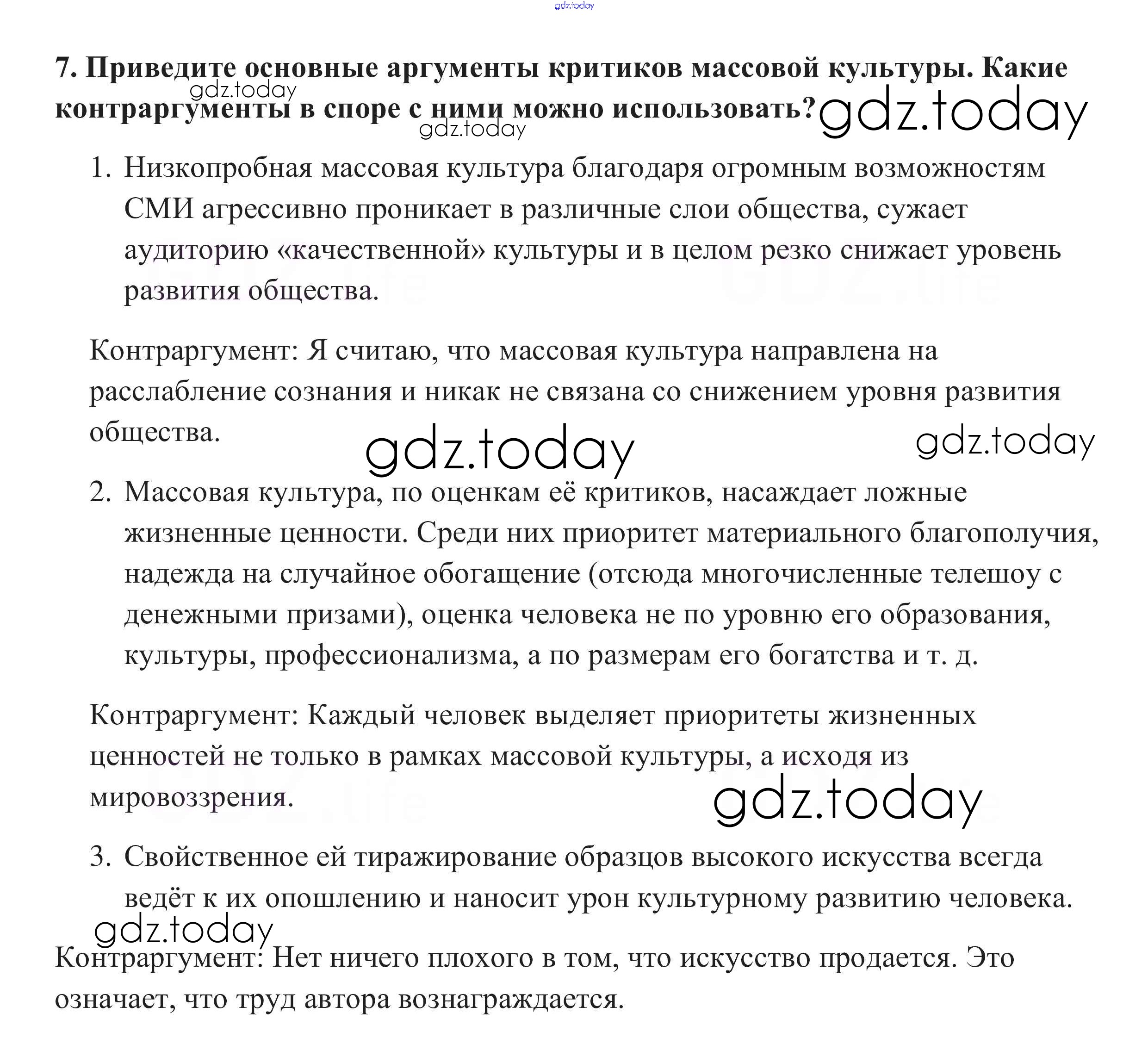 На страницах сайта gdz.today вы найдете учебный и вспомогательный материал, направленный на улучшения знаний школьной программы. ГДЗ - онлайн мир знаний Вопросы для самопроверки §16. Массовая культура 7 Учебнику по Обществознанию для 10 класса Боголюбов, Аверьянов Базовый уровень Просвещение 2015
