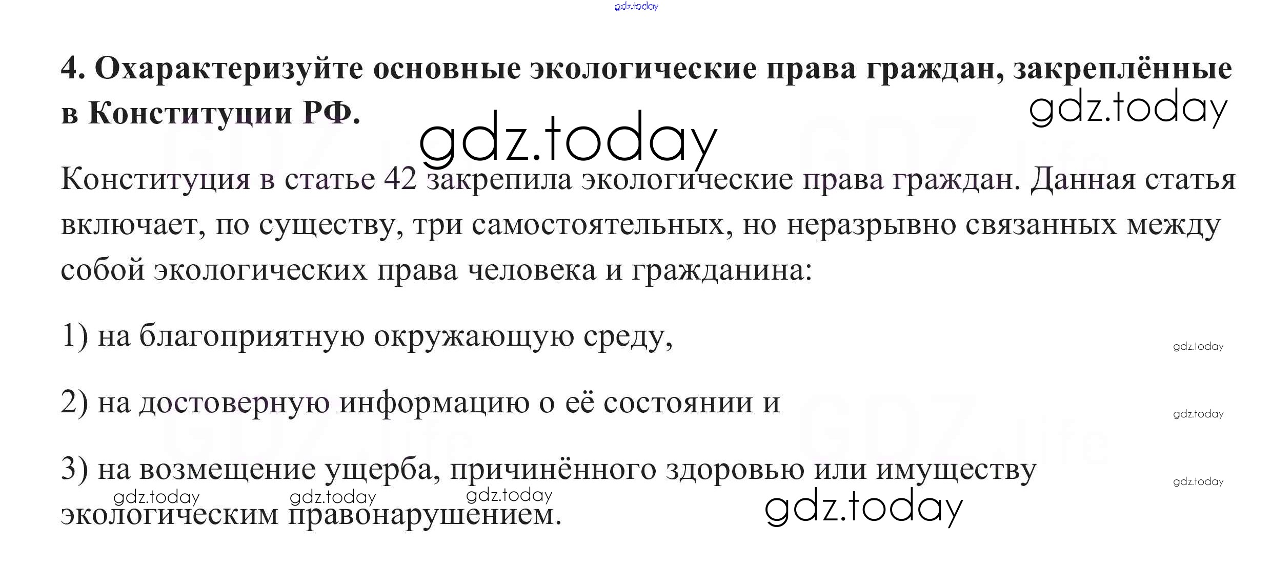 На страницах сайта gdz.today вы найдете учебный и вспомогательный материал, направленный на улучшения знаний школьной программы. ГДЗ - онлайн мир знаний Вопросы для самопроверки §26. Экологическое право 4 Учебнику по Обществознанию для 10 класса Боголюбов, Аверьянов Базовый уровень Просвещение 2015