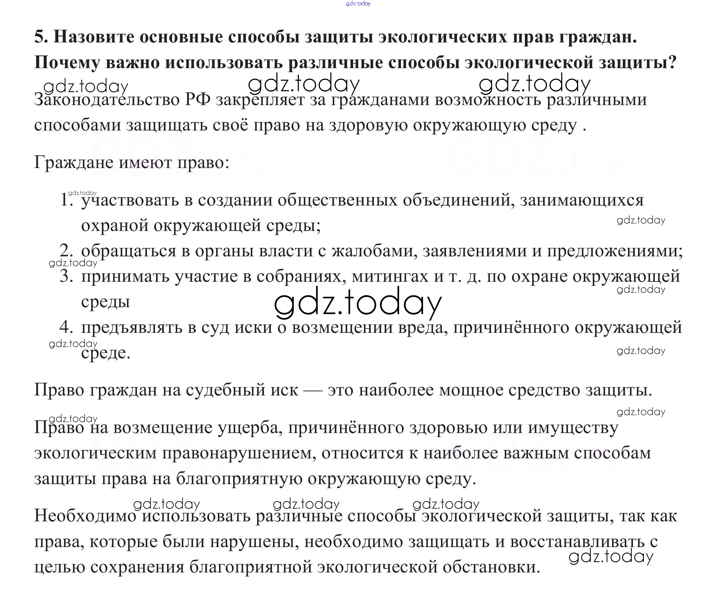 На страницах сайта gdz.today вы найдете учебный и вспомогательный материал, направленный на улучшения знаний школьной программы. ГДЗ - онлайн мир знаний Вопросы для самопроверки §26. Экологическое право 5 Учебнику по Обществознанию для 10 класса Боголюбов, Аверьянов Базовый уровень Просвещение 2015