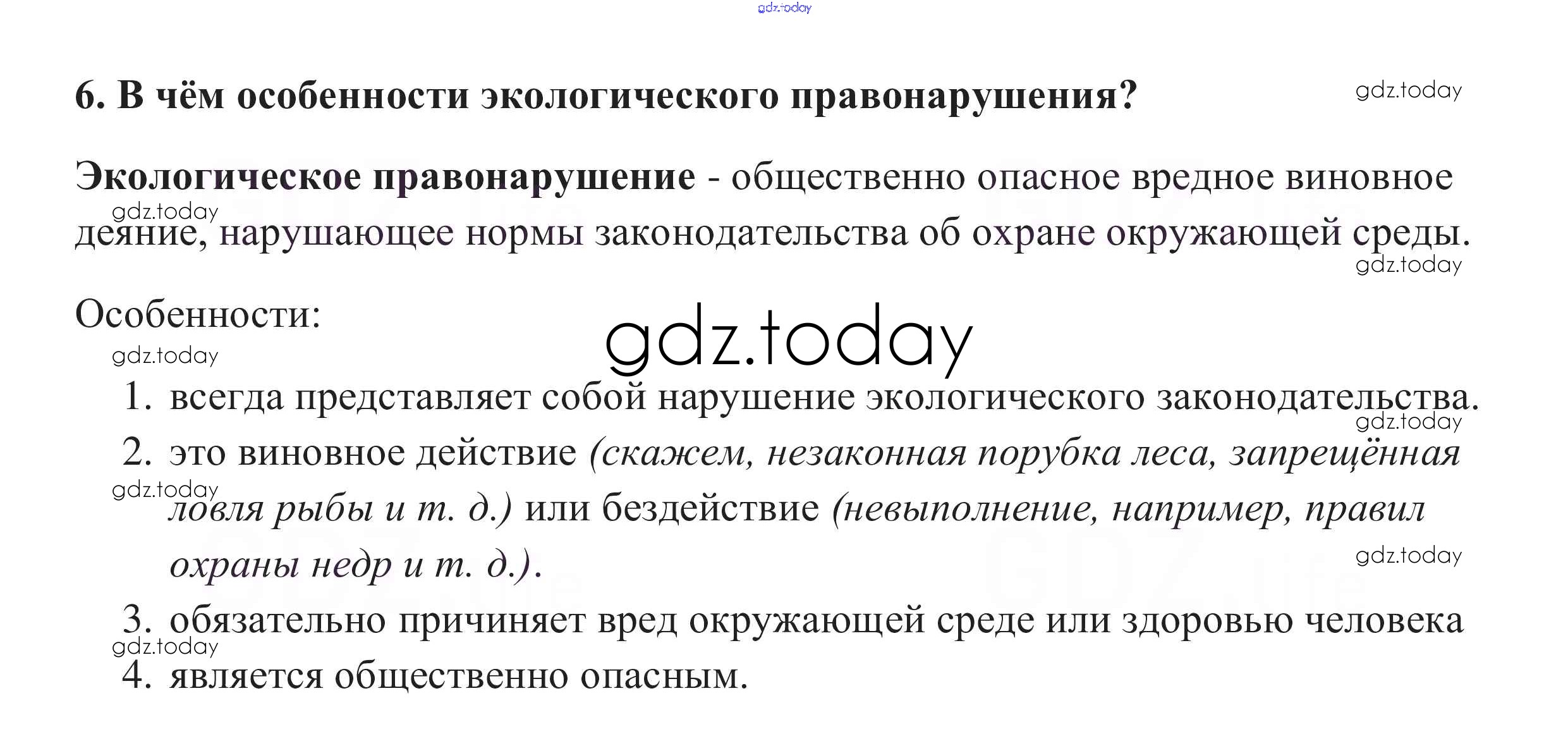 На страницах сайта gdz.today вы найдете учебный и вспомогательный материал, направленный на улучшения знаний школьной программы. ГДЗ - онлайн мир знаний Вопросы для самопроверки §26. Экологическое право 6 Учебнику по Обществознанию для 10 класса Боголюбов, Аверьянов Базовый уровень Просвещение 2015