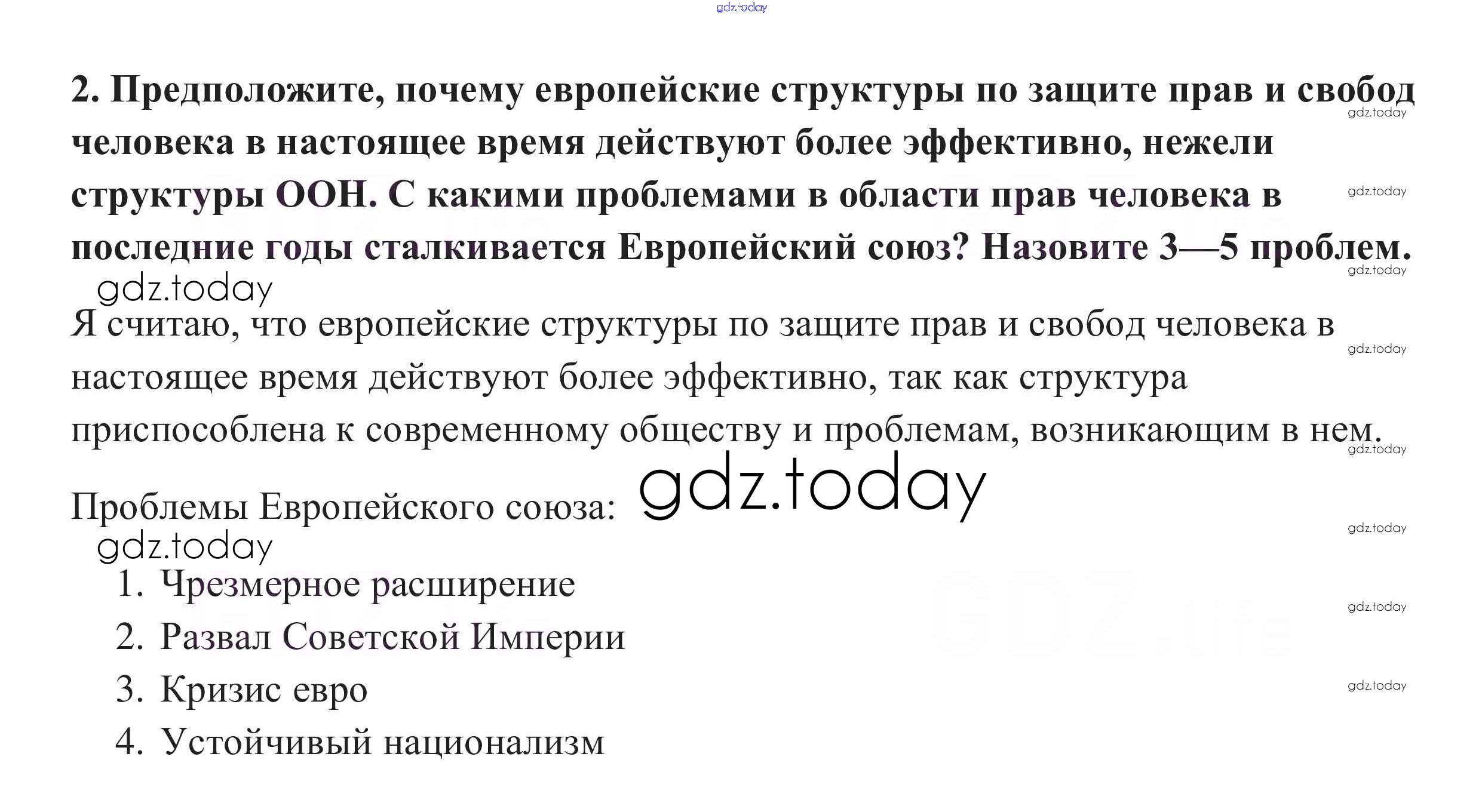 На страницах сайта gdz.today вы найдете учебный и вспомогательный материал, направленный на улучшения знаний школьной программы. ГДЗ - онлайн мир знаний Задания §29. Международная защита прав человека 2 Учебнику по Обществознанию для 10 класса Боголюбов, Аверьянов Базовый уровень Просвещение 2015