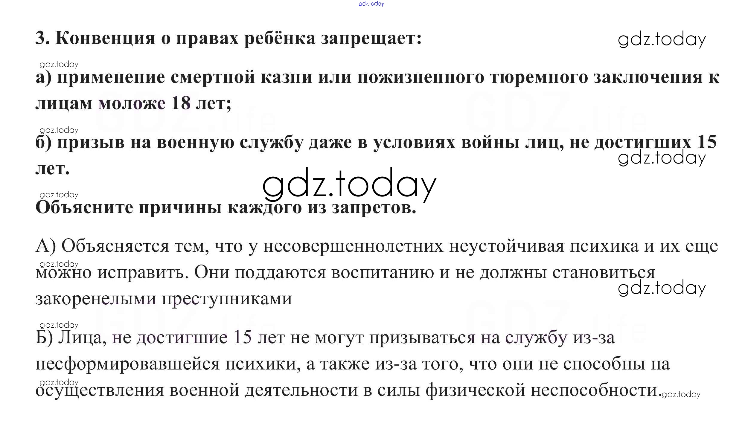 На страницах сайта gdz.today вы найдете учебный и вспомогательный материал, направленный на улучшения знаний школьной программы. ГДЗ - онлайн мир знаний Задания §29. Международная защита прав человека 3 Учебнику по Обществознанию для 10 класса Боголюбов, Аверьянов Базовый уровень Просвещение 2015