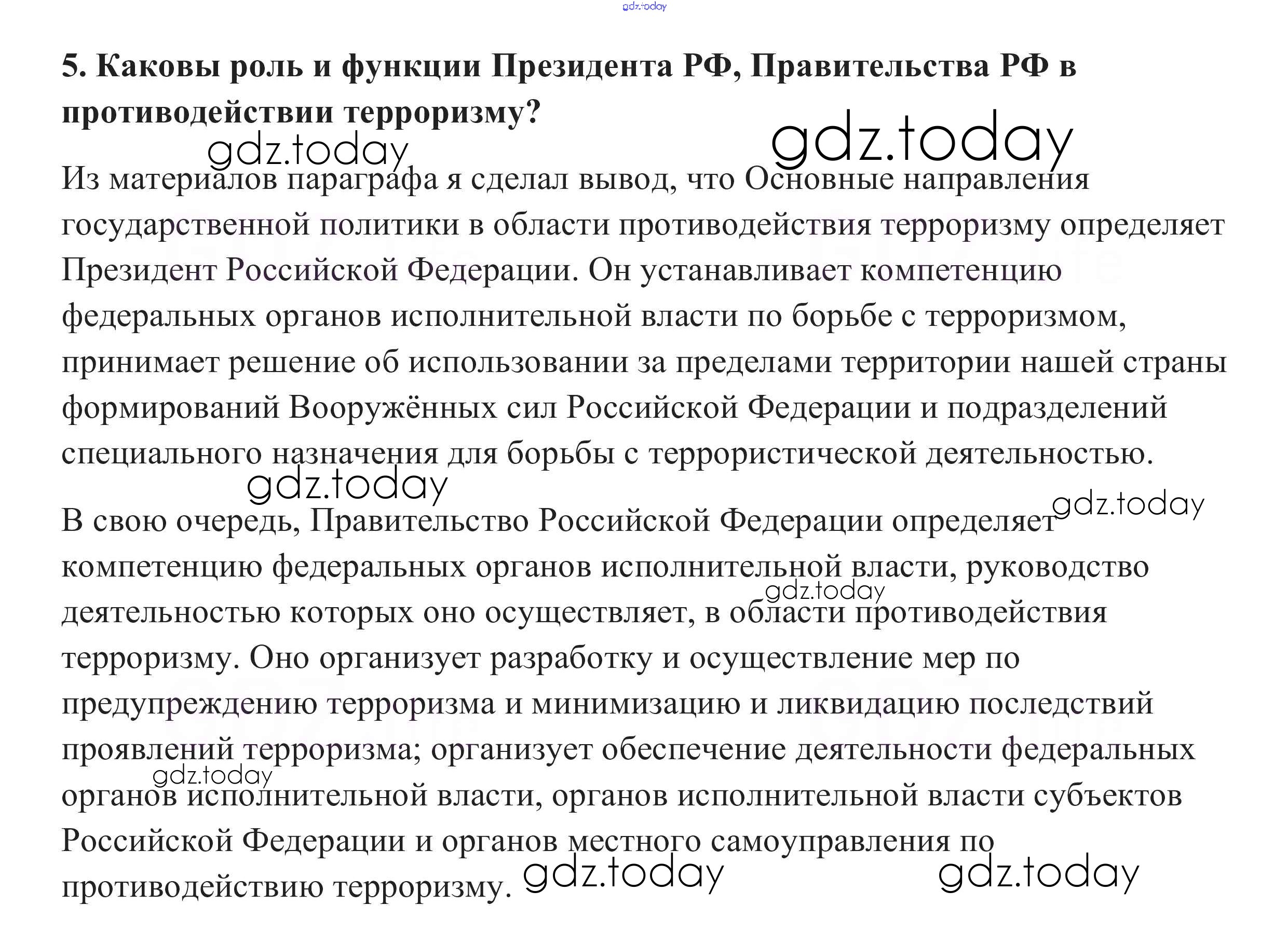 На страницах сайта gdz.today вы найдете учебный и вспомогательный материал, направленный на улучшения знаний школьной программы. ГДЗ - онлайн мир знаний Вопросы для самопроверки §30. Правовые основы антитеррористической политики РФ 5 Учебнику по Обществознанию для 10 класса Боголюбов, Аверьянов Базовый уровень Просвещение 2015