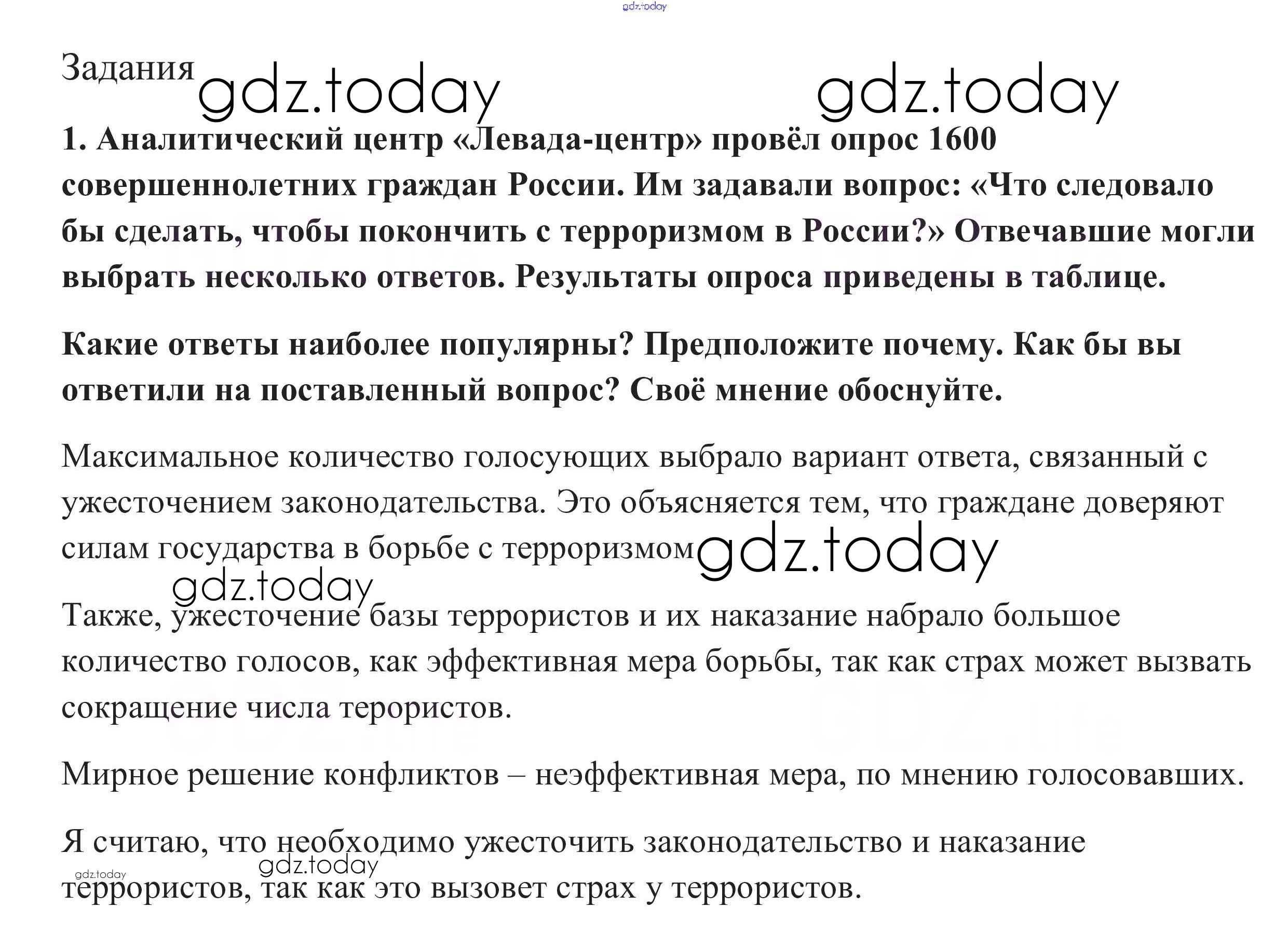 На страницах сайта gdz.today вы найдете учебный и вспомогательный материал, направленный на улучшения знаний школьной программы. ГДЗ - онлайн мир знаний Задания §30. Правовые основы антитеррористической политики РФ 1 Учебнику по Обществознанию для 10 класса Боголюбов, Аверьянов Базовый уровень Просвещение 2015