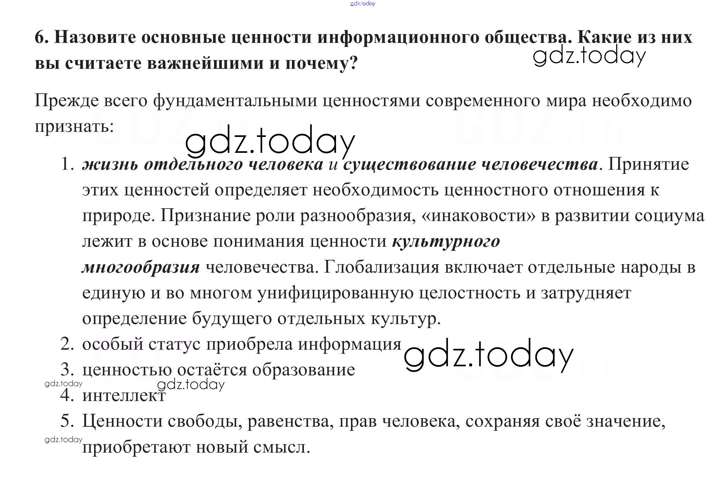 На страницах сайта gdz.today вы найдете учебный и вспомогательный материал, направленный на улучшения знаний школьной программы. ГДЗ - онлайн мир знаний Вопросы для самопроверки Заключение. Человек в XXI в 6 Учебнику по Обществознанию для 10 класса Боголюбов, Аверьянов Базовый уровень Просвещение 2015