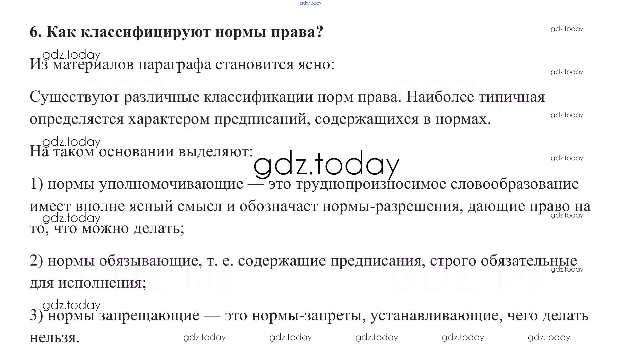 На страницах сайта gdz.today вы найдете учебный и вспомогательный материал, направленный на улучшения знаний школьной программы. ГДЗ - онлайн мир знаний Вопросы для самопроверки §18. Право в системе социальных норм 6 Учебнику по Обществознанию для 10 класса Боголюбов, Аверьянов Базовый уровень Просвещение 2015