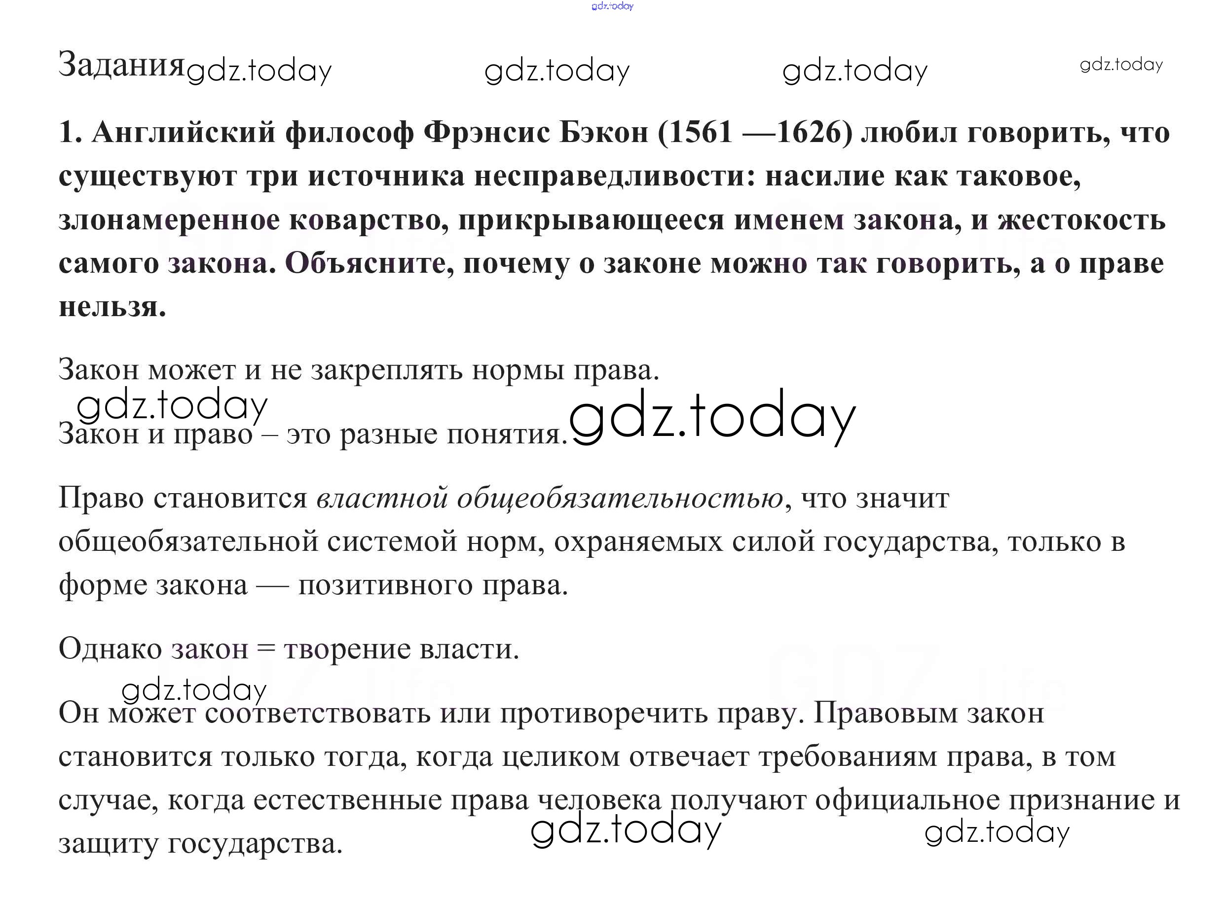 Ответы к Задания §18. Право в системе социальных норм 1 Учебнику по Обществознанию для 10 класса Боголюбов, Аверьянов Базовый уровень Просвещение 2015