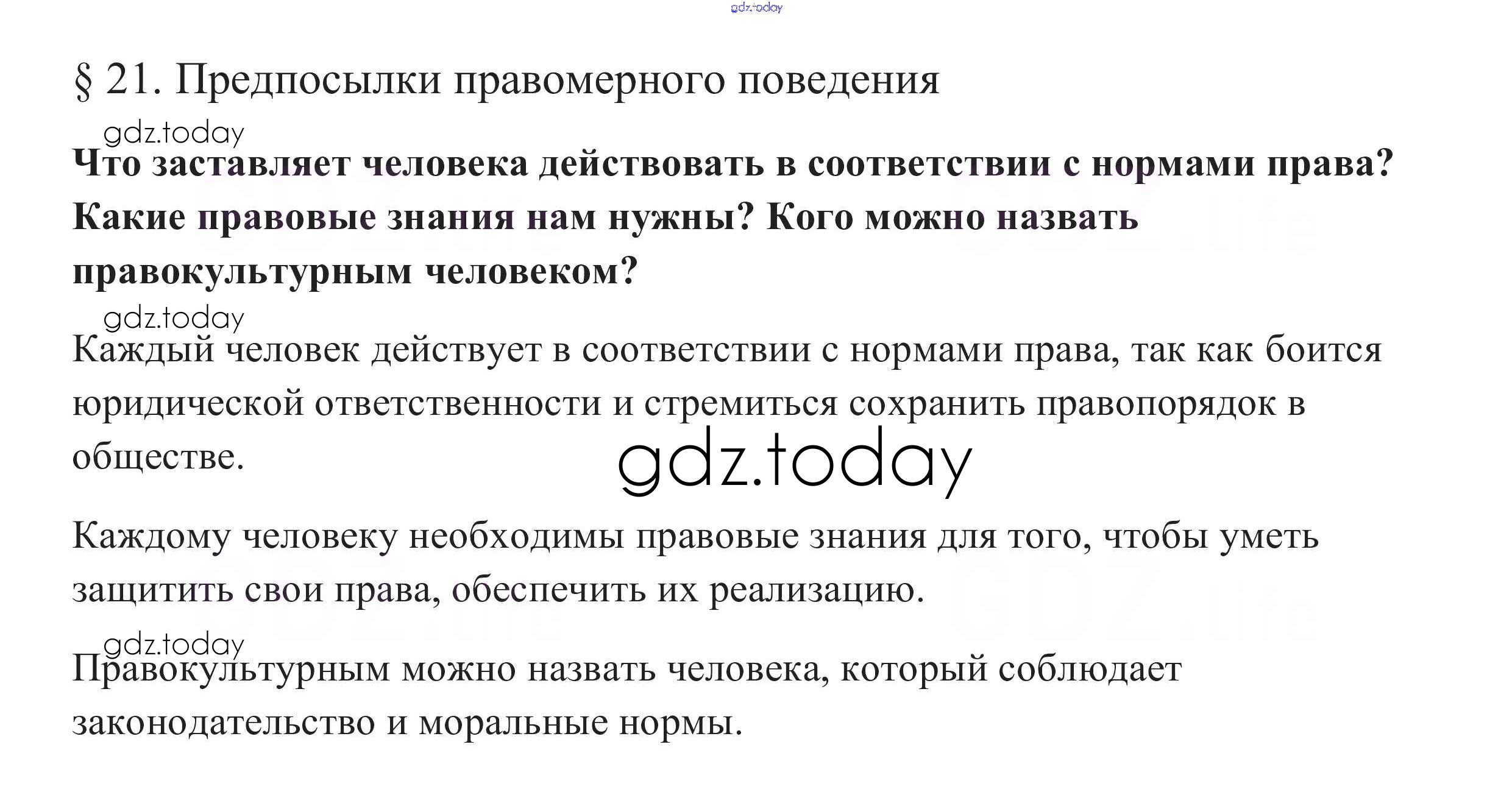 На страницах сайта gdz.today вы найдете учебный и вспомогательный материал, направленный на улучшения знаний школьной программы. ГДЗ - онлайн мир знаний В начале параграфа §21. Предпосылки правомерного поведения 1 Учебнику по Обществознанию для 10 класса Боголюбов, Аверьянов Базовый уровень Просвещение 2015
