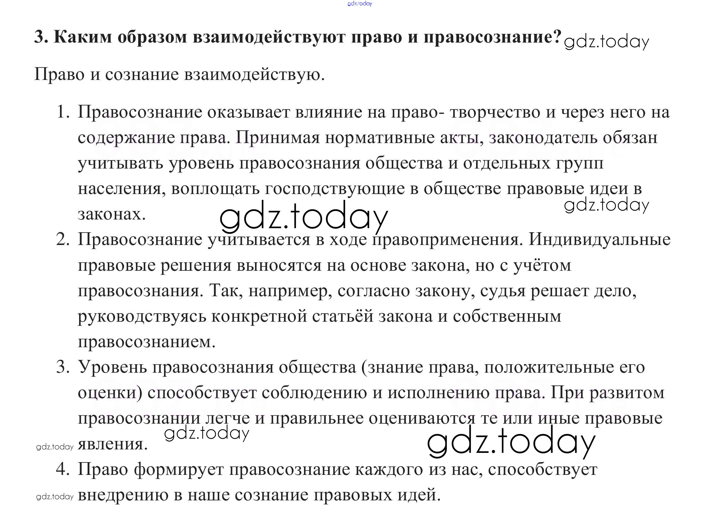 На страницах сайта gdz.today вы найдете учебный и вспомогательный материал, направленный на улучшения знаний школьной программы. ГДЗ - онлайн мир знаний Вопросы для самопроверки §21. Предпосылки правомерного поведения 3 Учебнику по Обществознанию для 10 класса Боголюбов, Аверьянов Базовый уровень Просвещение 2015
