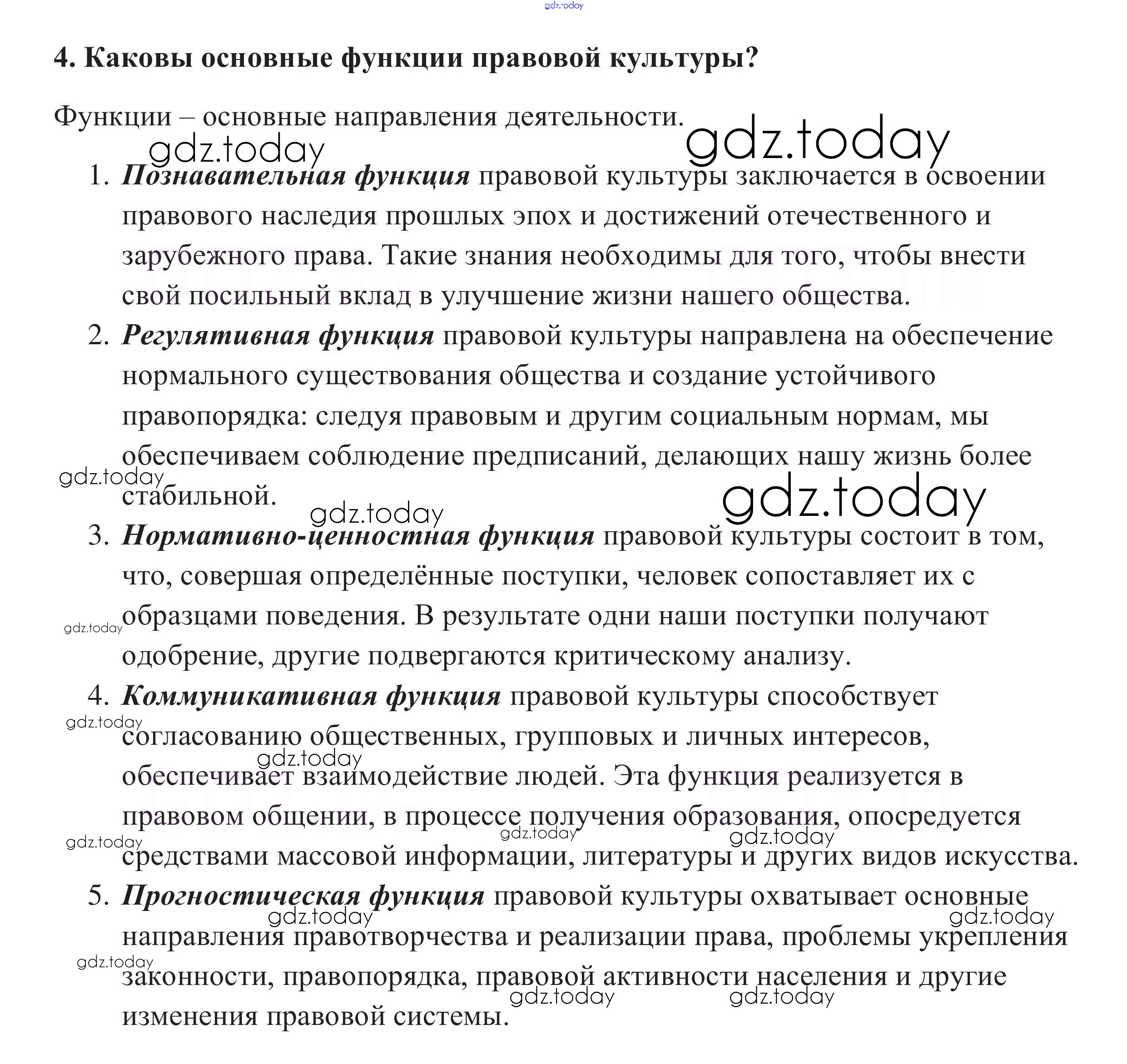 На страницах сайта gdz.today вы найдете учебный и вспомогательный материал, направленный на улучшения знаний школьной программы. ГДЗ - онлайн мир знаний Вопросы для самопроверки §21. Предпосылки правомерного поведения 4 Учебнику по Обществознанию для 10 класса Боголюбов, Аверьянов Базовый уровень Просвещение 2015