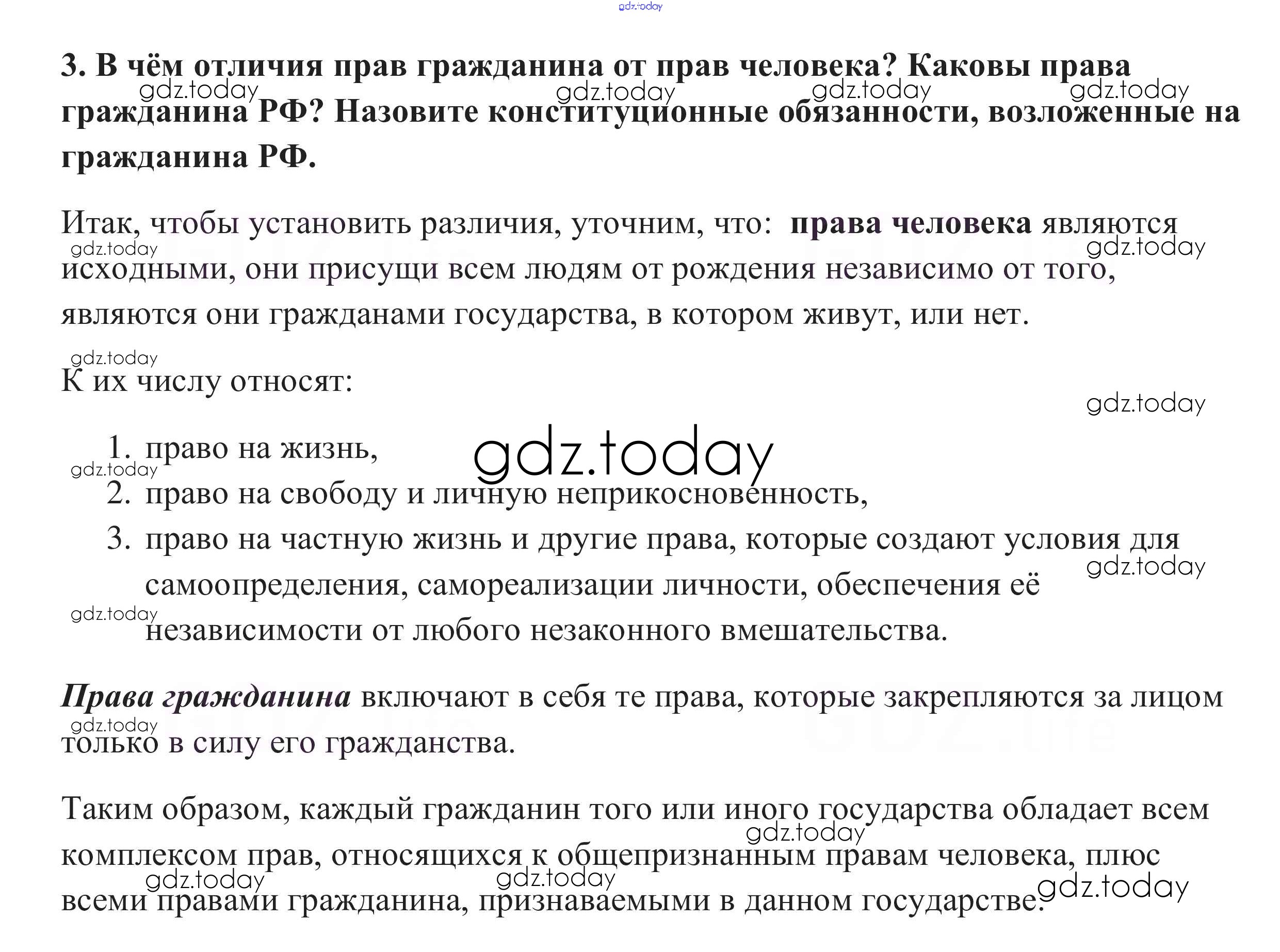На страницах сайта gdz.today вы найдете учебный и вспомогательный материал, направленный на улучшения знаний школьной программы. ГДЗ - онлайн мир знаний Вопросы для самопроверки §22. Гражданин Российской Федерации 3 Учебнику по Обществознанию для 10 класса Боголюбов, Аверьянов Базовый уровень Просвещение 2015