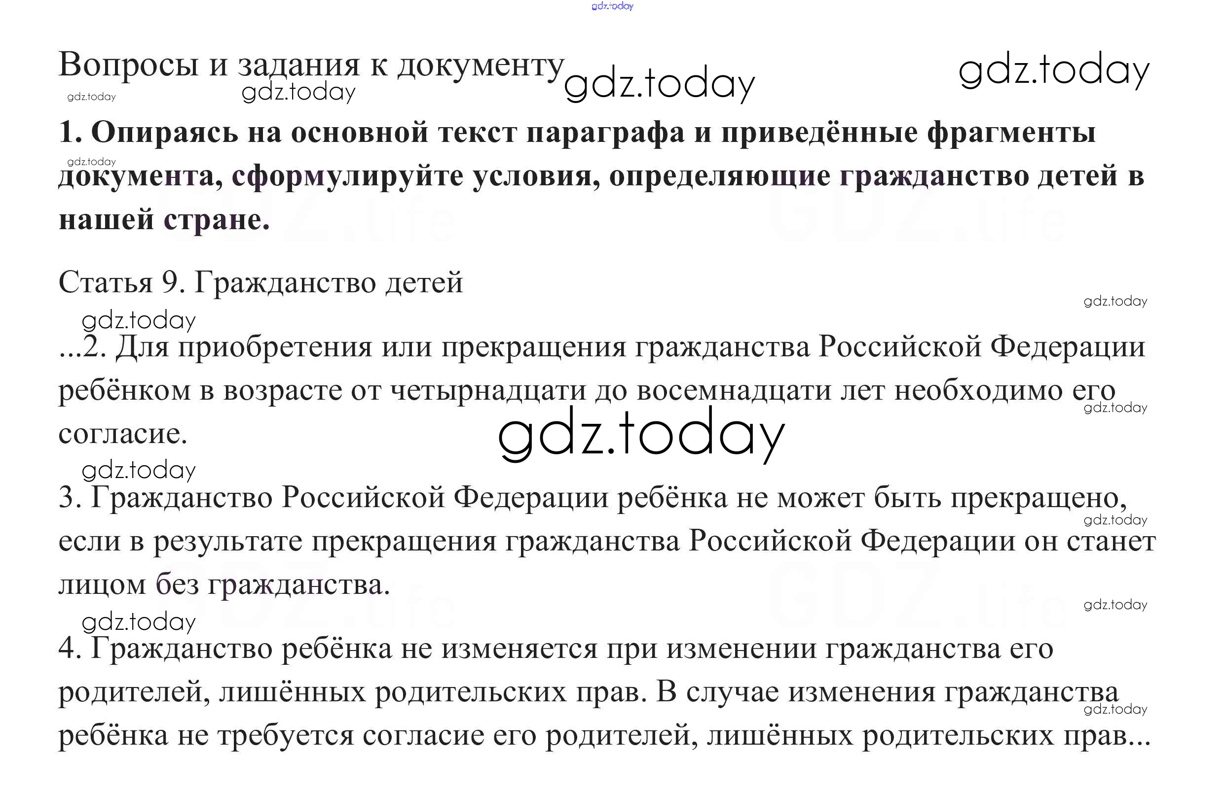 Ответы к Вопросы и задания к документу §22. Гражданин Российской Федерации 1 Учебнику по Обществознанию для 10 класса Боголюбов, Аверьянов Базовый уровень Просвещение 2015