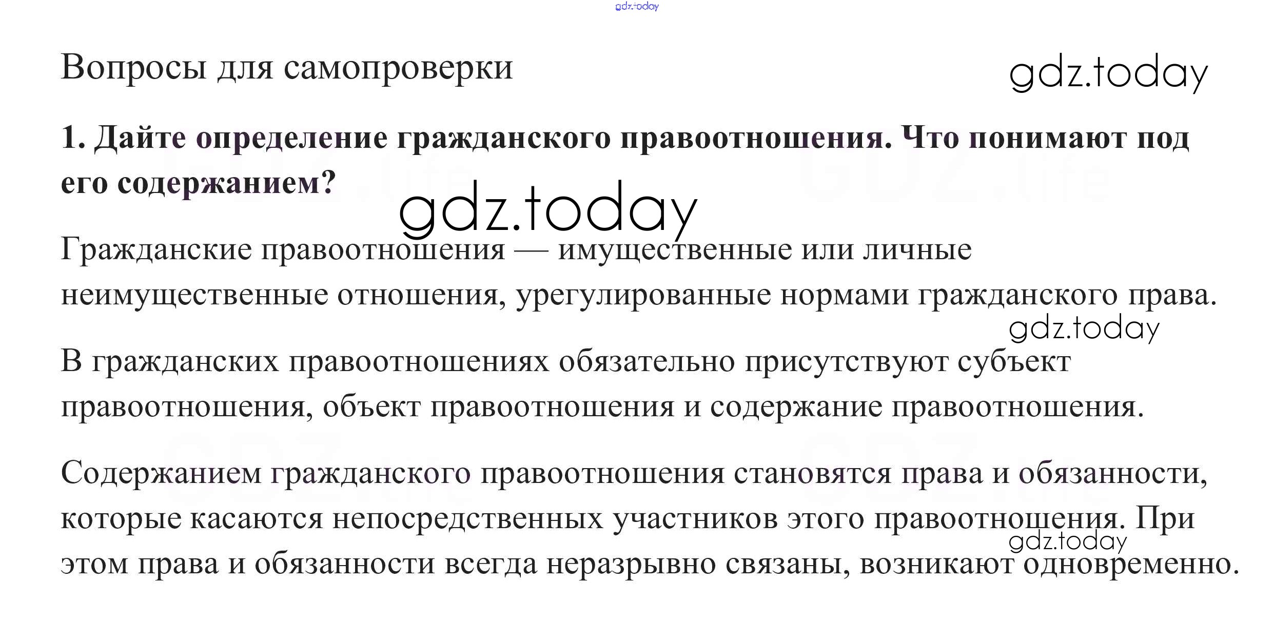 На страницах сайта gdz.today вы найдете учебный и вспомогательный материал, направленный на улучшения знаний школьной программы. ГДЗ - онлайн мир знаний Вопросы для самопроверки §23. Гражданское право 1 Учебнику по Обществознанию для 10 класса Боголюбов, Аверьянов Базовый уровень Просвещение 2015