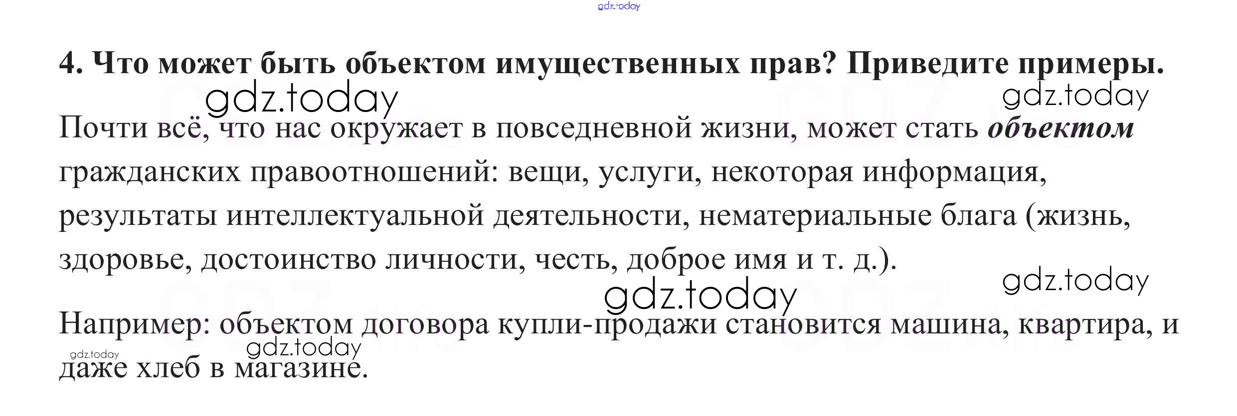 На страницах сайта gdz.today вы найдете учебный и вспомогательный материал, направленный на улучшения знаний школьной программы. ГДЗ - онлайн мир знаний Вопросы для самопроверки §23. Гражданское право 4 Учебнику по Обществознанию для 10 класса Боголюбов, Аверьянов Базовый уровень Просвещение 2015