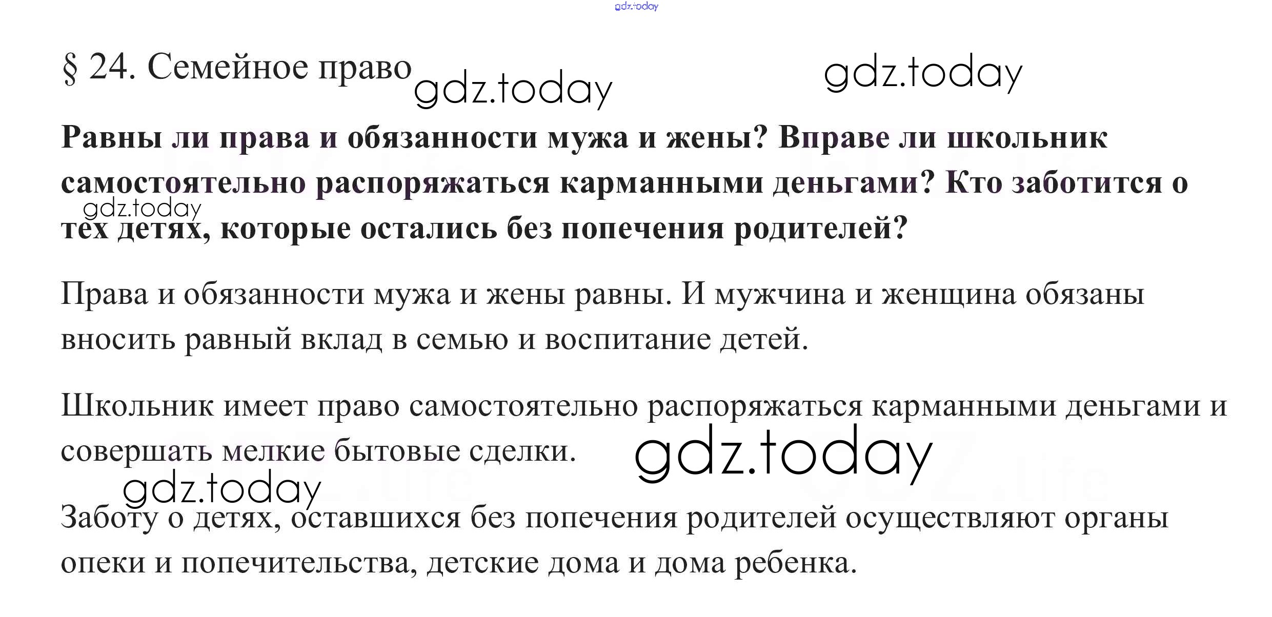 На страницах сайта gdz.today вы найдете учебный и вспомогательный материал, направленный на улучшения знаний школьной программы. ГДЗ - онлайн мир знаний В начале параграфа §24. Семейное право 1 Учебнику по Обществознанию для 10 класса Боголюбов, Аверьянов Базовый уровень Просвещение 2015