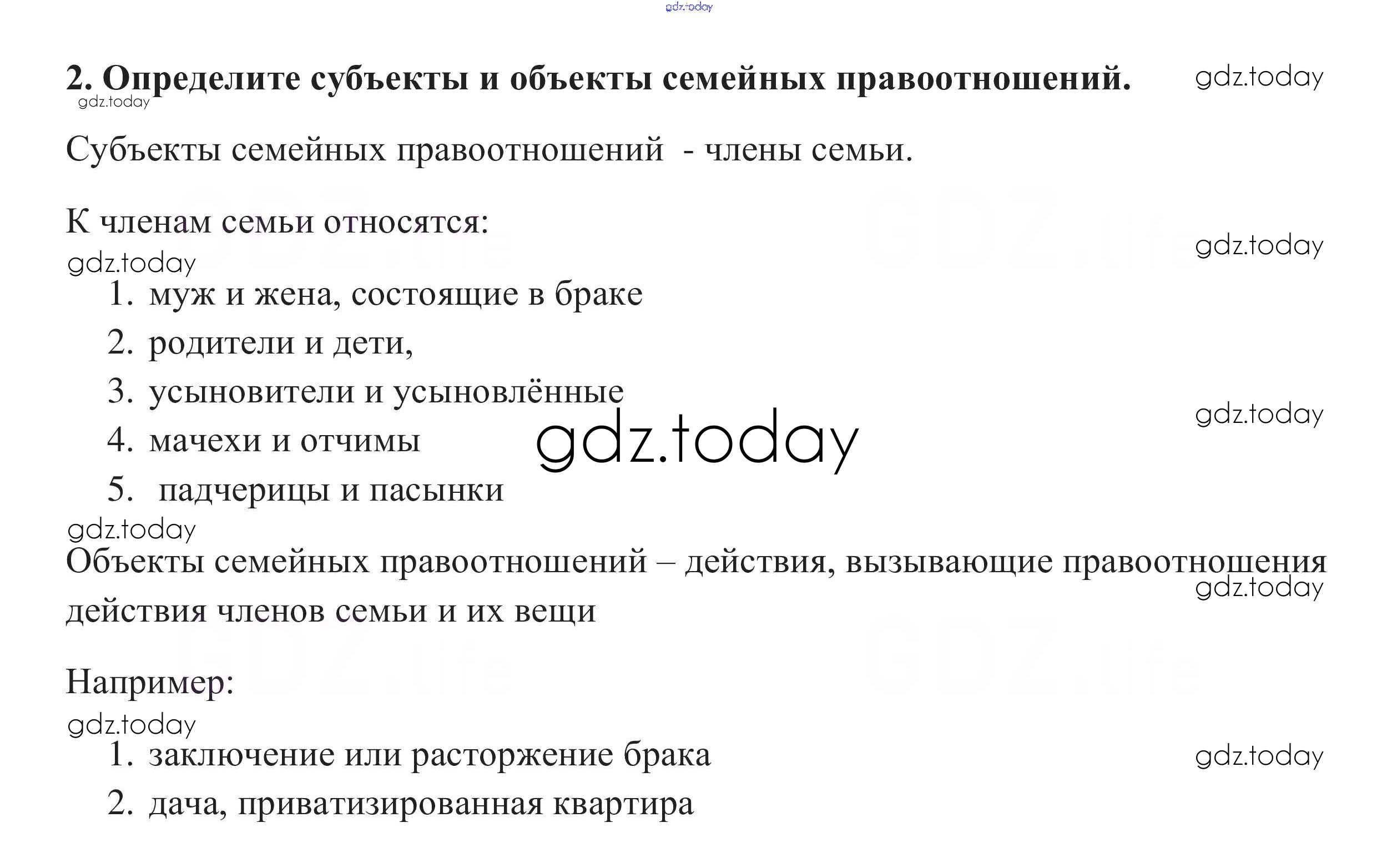 На страницах сайта gdz.today вы найдете учебный и вспомогательный материал, направленный на улучшения знаний школьной программы. ГДЗ - онлайн мир знаний Вопросы для самопроверки §24. Семейное право 2 Учебнику по Обществознанию для 10 класса Боголюбов, Аверьянов Базовый уровень Просвещение 2015