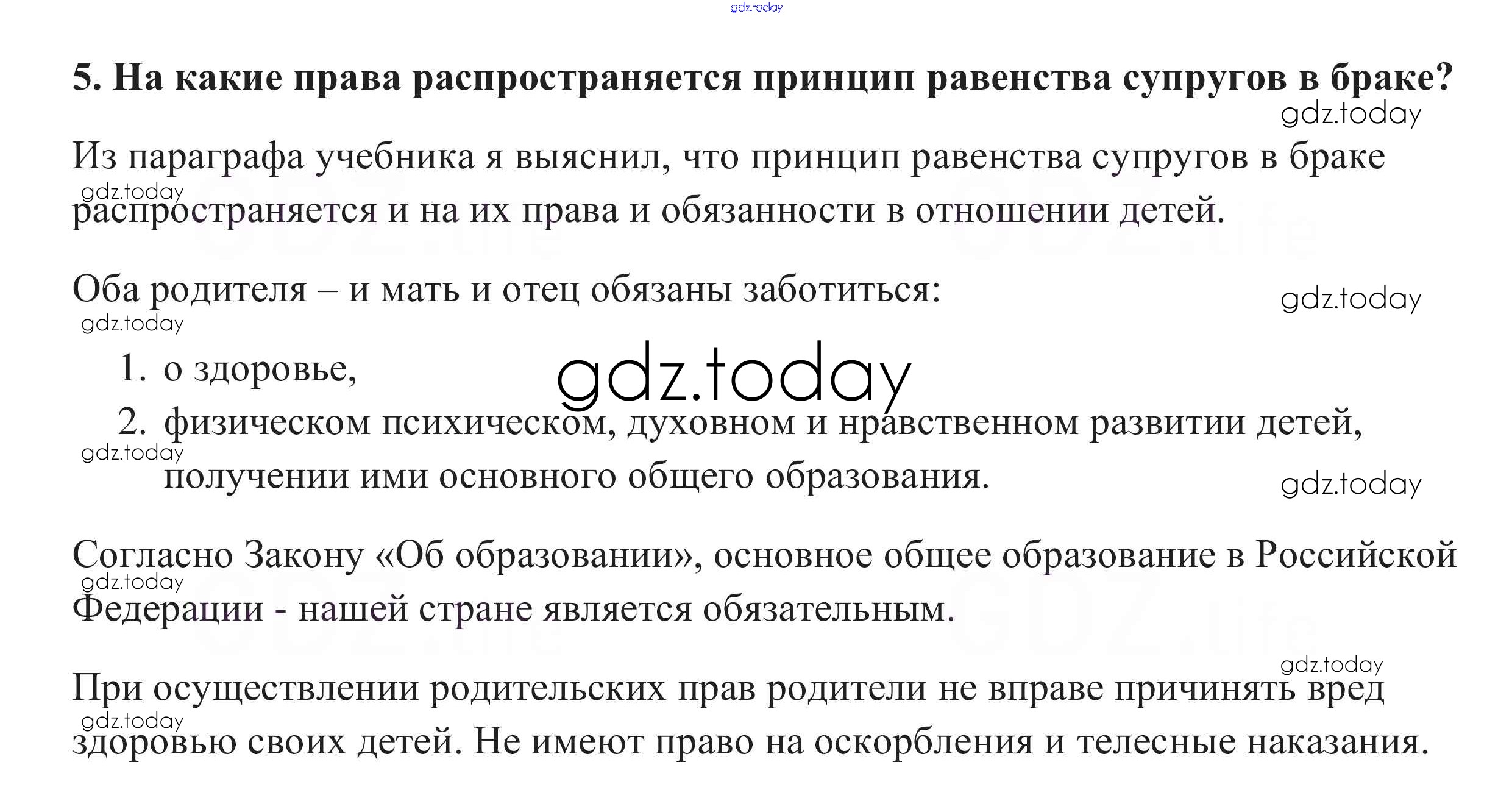 На страницах сайта gdz.today вы найдете учебный и вспомогательный материал, направленный на улучшения знаний школьной программы. ГДЗ - онлайн мир знаний Вопросы для самопроверки §24. Семейное право 5 Учебнику по Обществознанию для 10 класса Боголюбов, Аверьянов Базовый уровень Просвещение 2015