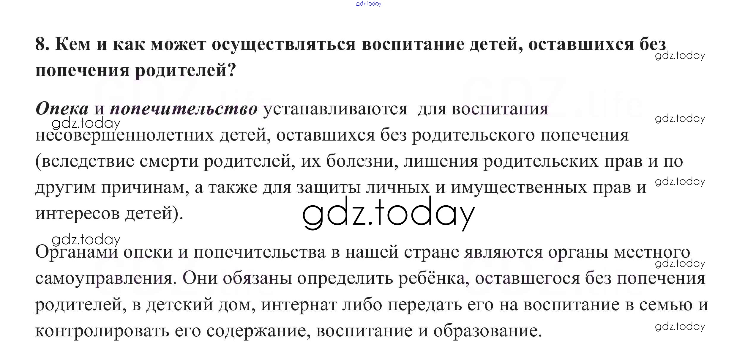 На страницах сайта gdz.today вы найдете учебный и вспомогательный материал, направленный на улучшения знаний школьной программы. ГДЗ - онлайн мир знаний Вопросы для самопроверки §24. Семейное право 8 Учебнику по Обществознанию для 10 класса Боголюбов, Аверьянов Базовый уровень Просвещение 2015