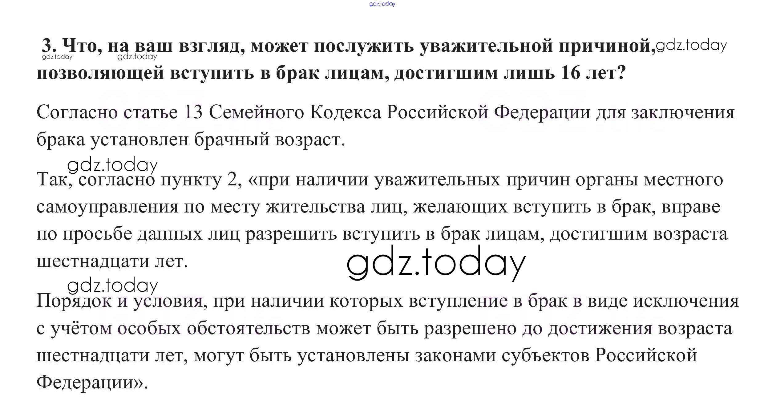На страницах сайта gdz.today вы найдете учебный и вспомогательный материал, направленный на улучшения знаний школьной программы. ГДЗ - онлайн мир знаний Вопросы и задания к документу §24. Семейное право 3 Учебнику по Обществознанию для 10 класса Боголюбов, Аверьянов Базовый уровень Просвещение 2015