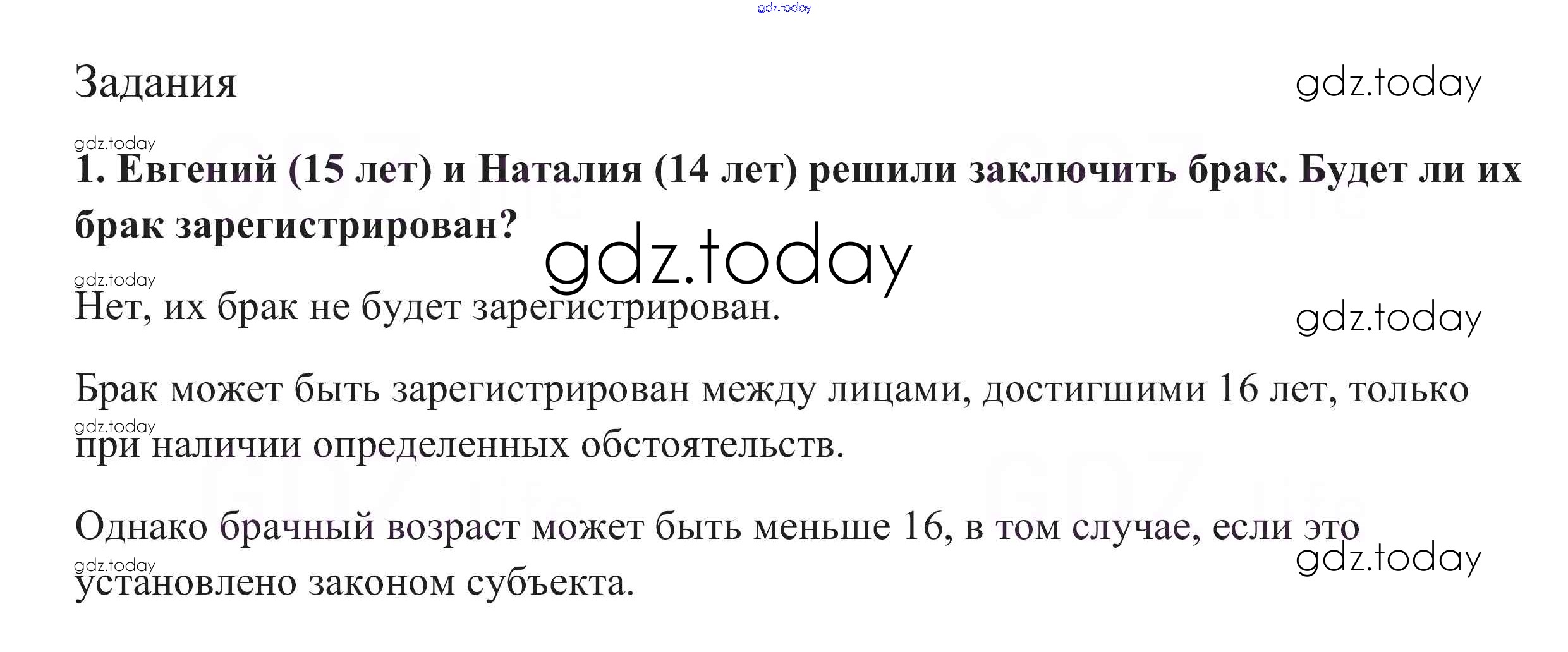 На страницах сайта gdz.today вы найдете учебный и вспомогательный материал, направленный на улучшения знаний школьной программы. ГДЗ - онлайн мир знаний Задания §24. Семейное право 1 Учебнику по Обществознанию для 10 класса Боголюбов, Аверьянов Базовый уровень Просвещение 2015
