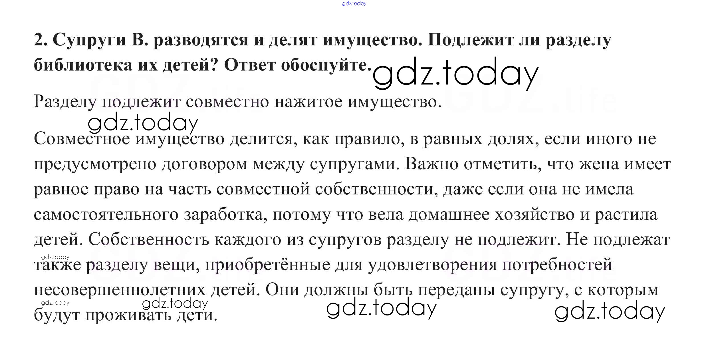 На страницах сайта gdz.today вы найдете учебный и вспомогательный материал, направленный на улучшения знаний школьной программы. ГДЗ - онлайн мир знаний Задания §24. Семейное право 2 Учебнику по Обществознанию для 10 класса Боголюбов, Аверьянов Базовый уровень Просвещение 2015