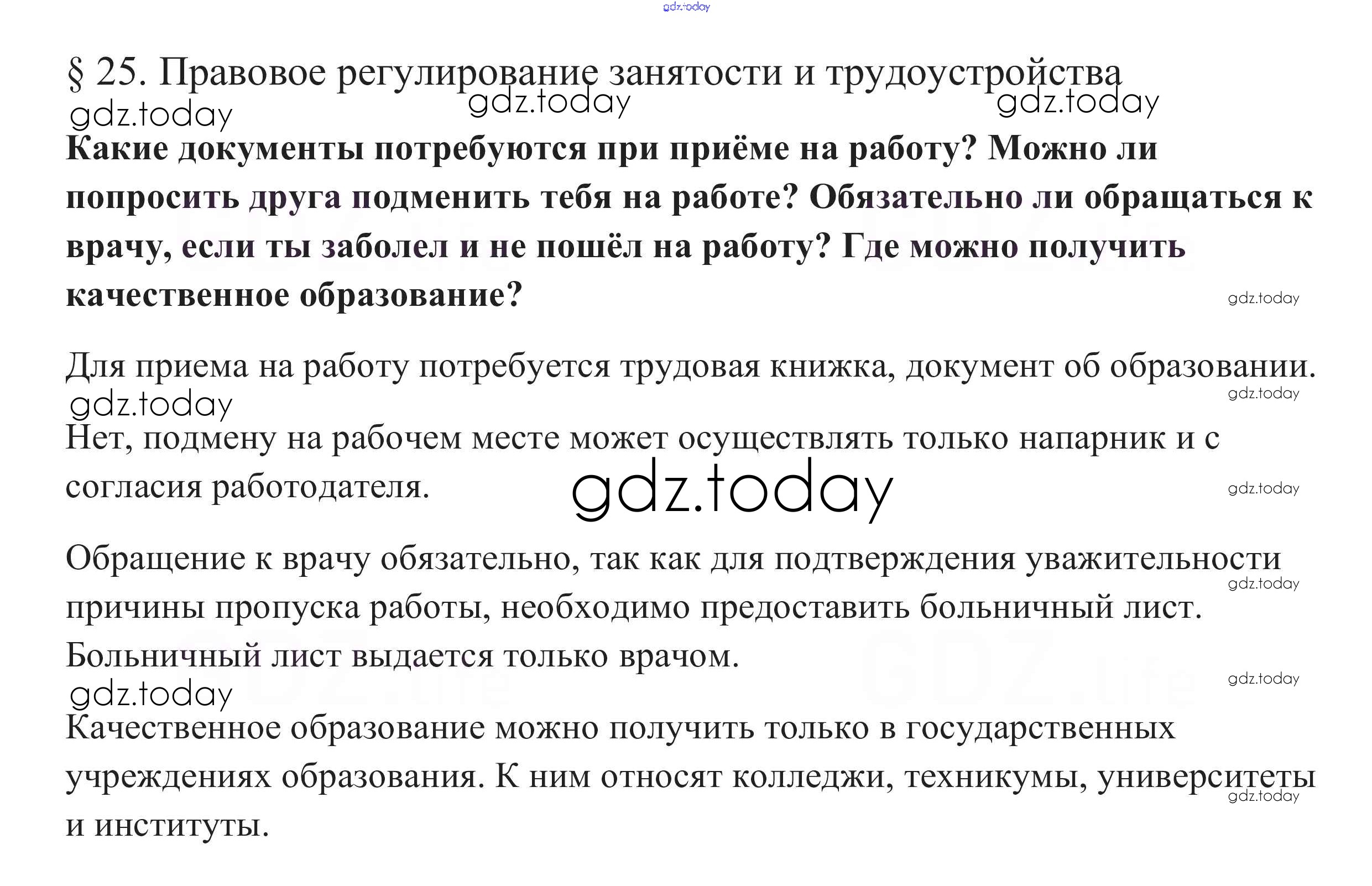 На страницах сайта gdz.today вы найдете учебный и вспомогательный материал, направленный на улучшения знаний школьной программы. ГДЗ - онлайн мир знаний В начале параграфа §25. Правовое регулирование занятости и трудоустройства 1 Учебнику по Обществознанию для 10 класса Боголюбов, Аверьянов Базовый уровень Просвещение 2015