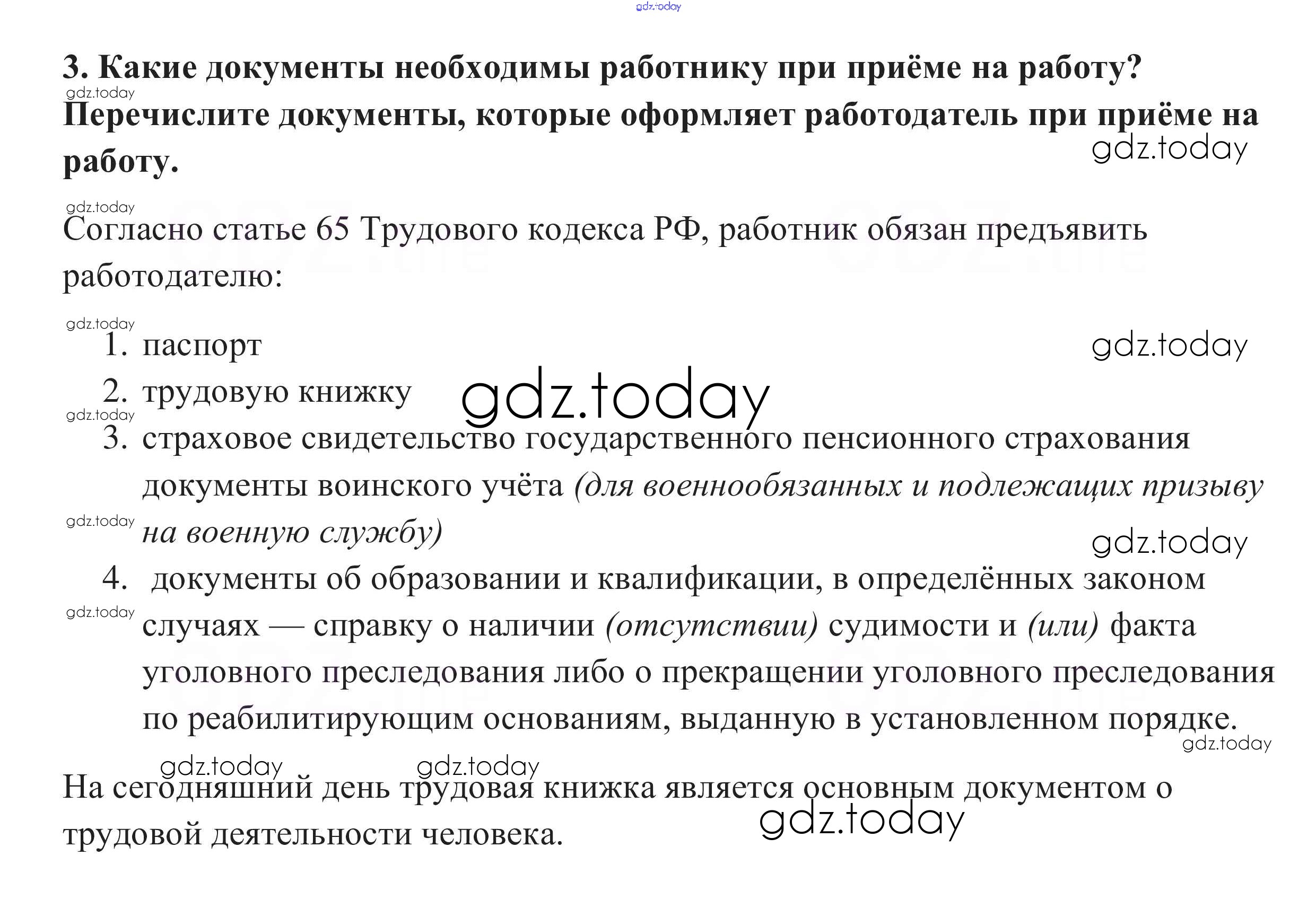На страницах сайта gdz.today вы найдете учебный и вспомогательный материал, направленный на улучшения знаний школьной программы. ГДЗ - онлайн мир знаний Вопросы для самопроверки §25. Правовое регулирование занятости и трудоустройства 3 Учебнику по Обществознанию для 10 класса Боголюбов, Аверьянов Базовый уровень Просвещение 2015