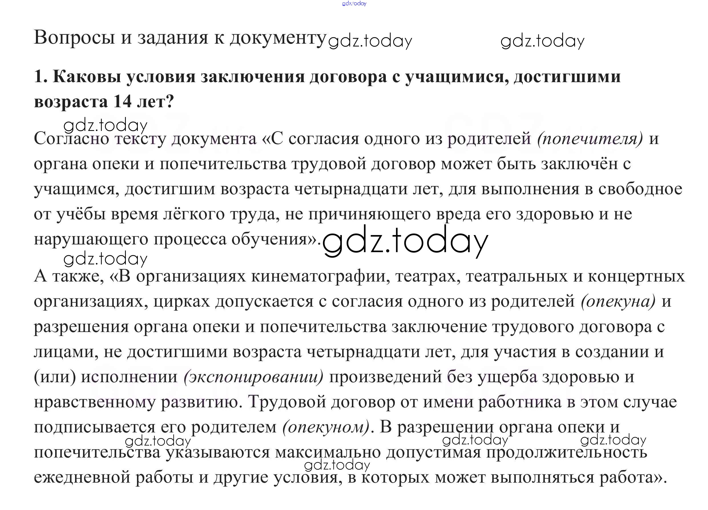Ответы к Вопросы и задания к документу §25. Правовое регулирование занятости и трудоустройства 1 Учебнику по Обществознанию для 10 класса Боголюбов, Аверьянов Базовый уровень Просвещение 2015