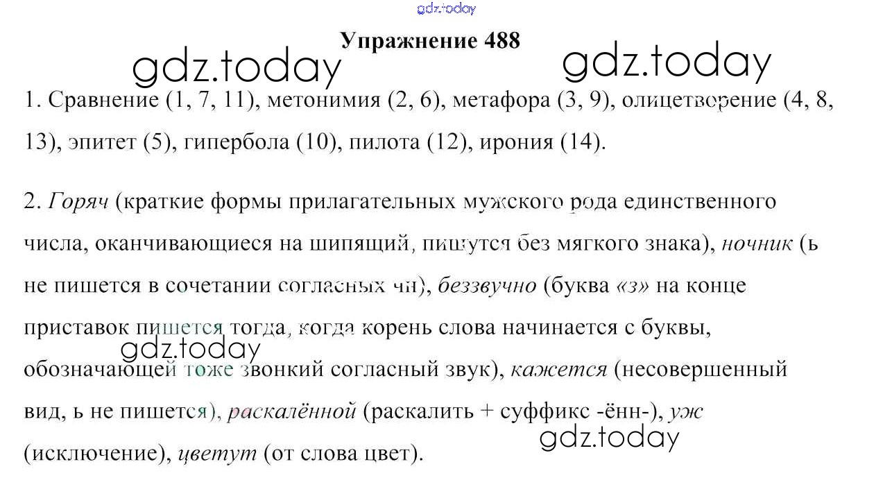 Ответы к Решение к упражнениям 488 Учебнику по Русскому языку для 10 класса Леонович, Волынец Национальный институт образования 2020