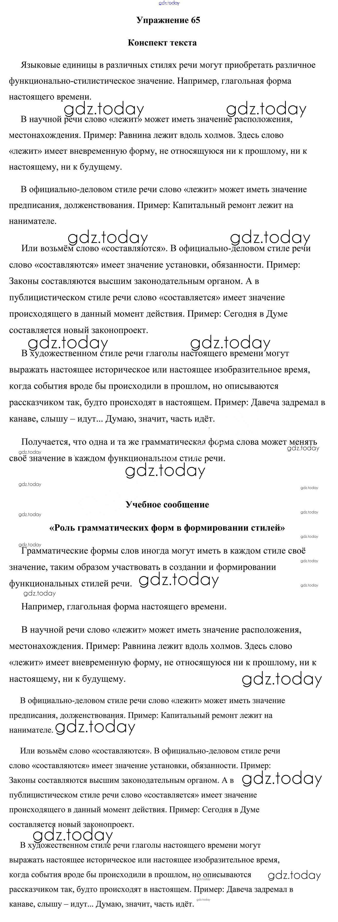 Ответы к Решение к упражнениям 65 Учебнику по Русскому языку для 10 класса Леонович, Волынец Национальный институт образования 2020