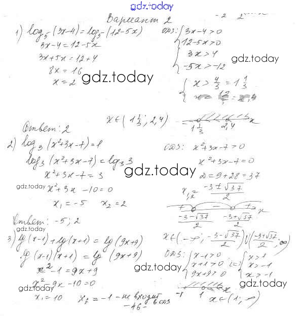 На страницах сайта gdz.today вы найдете учебный и вспомогательный материал, направленный на улучшения знаний школьной программы. ГДЗ - онлайн мир знаний Решение к самостоятельным работам 21 (Варианты) 2 Самостоятельным работам по Алгебре для 11 класса Александрова Базовый уровень Мнемозина УМК 2016