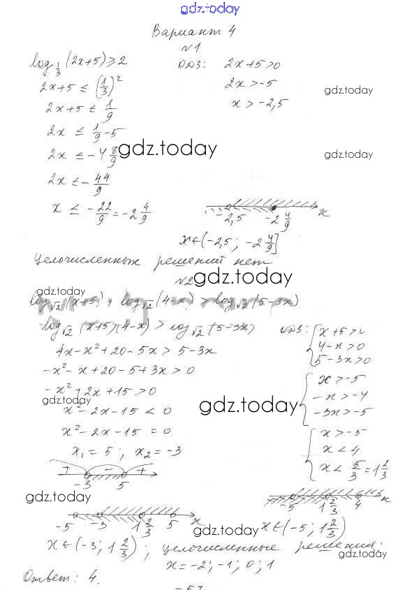 На страницах сайта gdz.today вы найдете учебный и вспомогательный материал, направленный на улучшения знаний школьной программы. ГДЗ - онлайн мир знаний Решение к самостоятельным работам 23 (Варианты) 4 Самостоятельным работам по Алгебре для 11 класса Александрова Базовый уровень Мнемозина УМК 2016