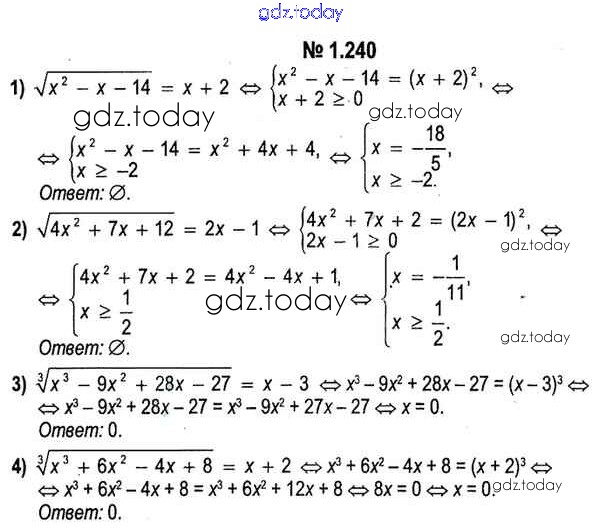 Ответы к Решение к главе 1 1.240 Учебнику по Алгебре для 11 класса Кузнецова, Муравьева Народная асвета 2015