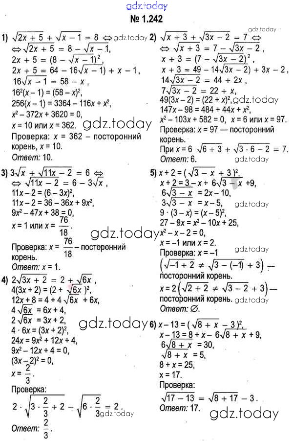 Ответы к Решение к главе 1 1.242 Учебнику по Алгебре для 11 класса Кузнецова, Муравьева Народная асвета 2015