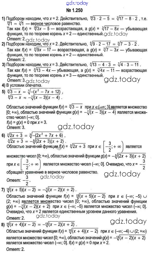 Ответы к Решение к главе 1 1.250 Учебнику по Алгебре для 11 класса Кузнецова, Муравьева Народная асвета 2015