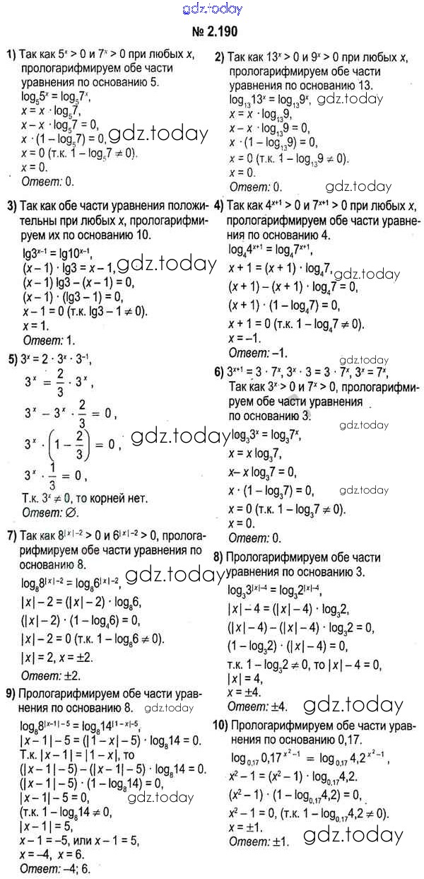 Ответы к Решение к главе 2 2.190 Учебнику по Алгебре для 11 класса Кузнецова, Муравьева Народная асвета 2015