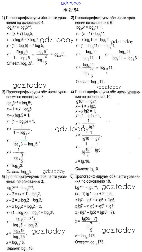 Ответы к Решение к главе 2 2.194 Учебнику по Алгебре для 11 класса Кузнецова, Муравьева Народная асвета 2015