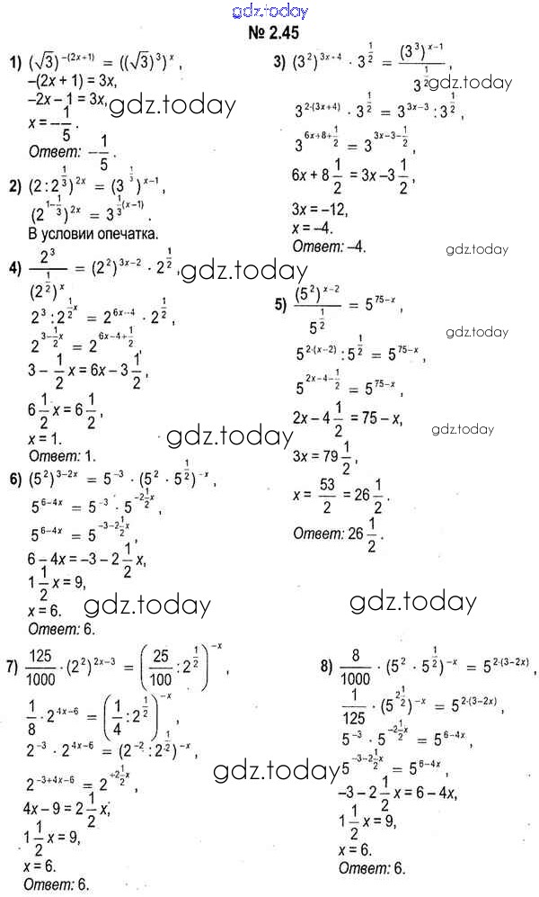 Ответы к Решение к главе 2 2.45 Учебнику по Алгебре для 11 класса Кузнецова, Муравьева Народная асвета 2015