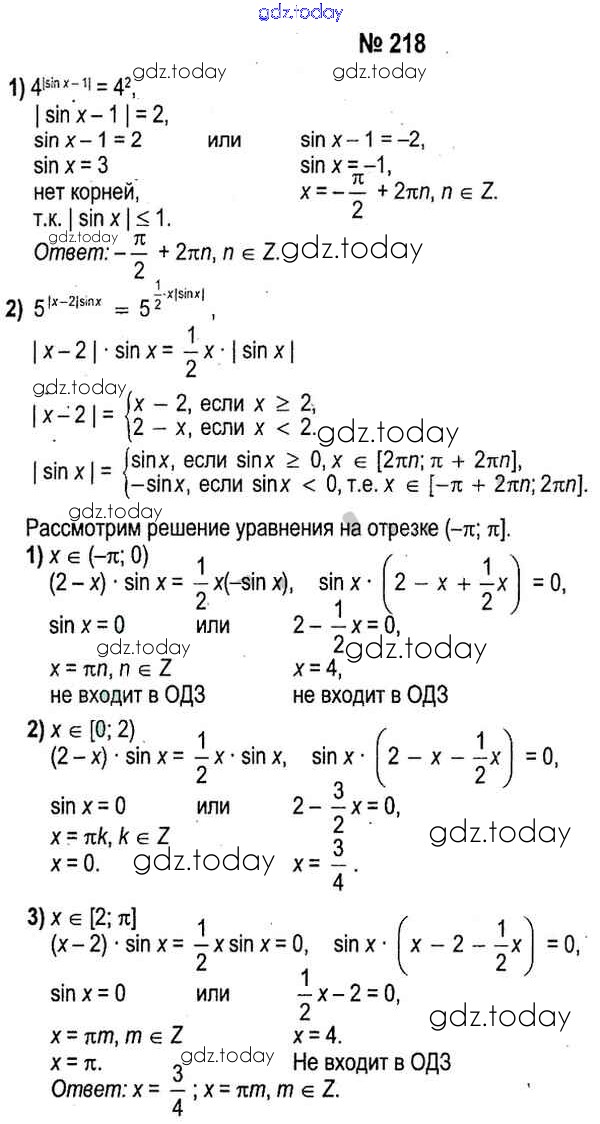 Ответы к Решение к разделу повторение 218 Учебнику по Алгебре для 11 класса Кузнецова, Муравьева Народная асвета 2015