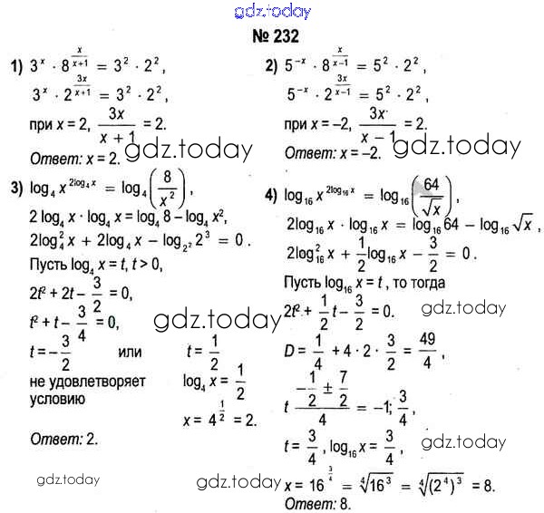 Ответы к Решение к разделу повторение 232 Учебнику по Алгебре для 11 класса Кузнецова, Муравьева Народная асвета 2015