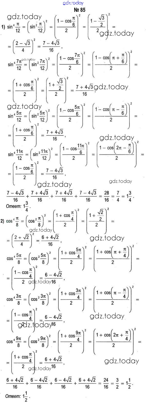 Ответы к Решение к разделу повторение 85 Учебнику по Алгебре для 11 класса Кузнецова, Муравьева Народная асвета 2015