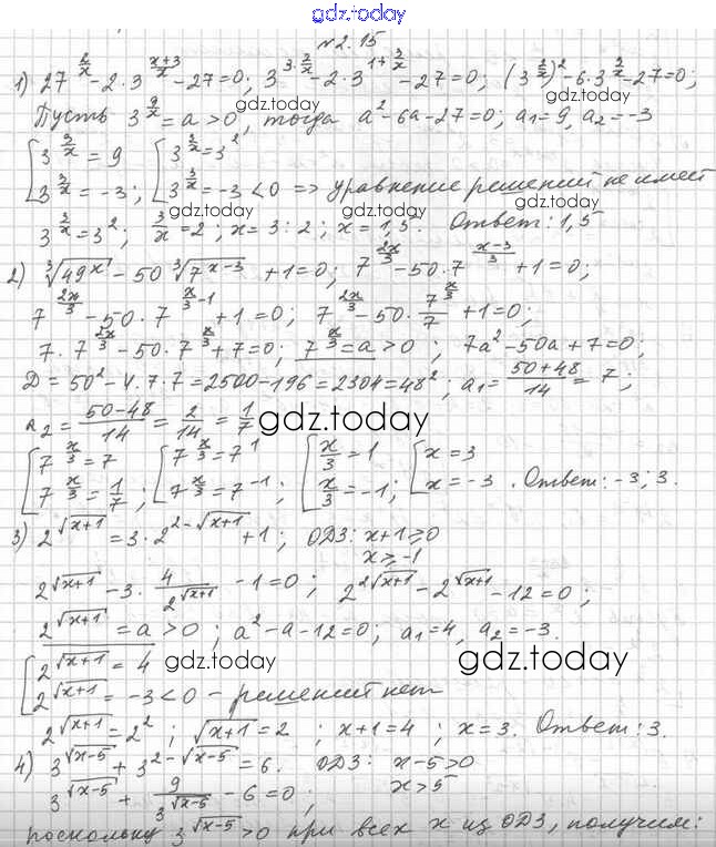На страницах сайта gdz.today вы найдете учебный и вспомогательный материал, направленный на улучшения знаний школьной программы. ГДЗ - онлайн мир знаний ГДЗ. §2 2.15 Учебнику по Алгебре для 11 класса Мерзляк, Номировский Базовый и профильный уровни Вентана-граф Алгоритм успеха 2017