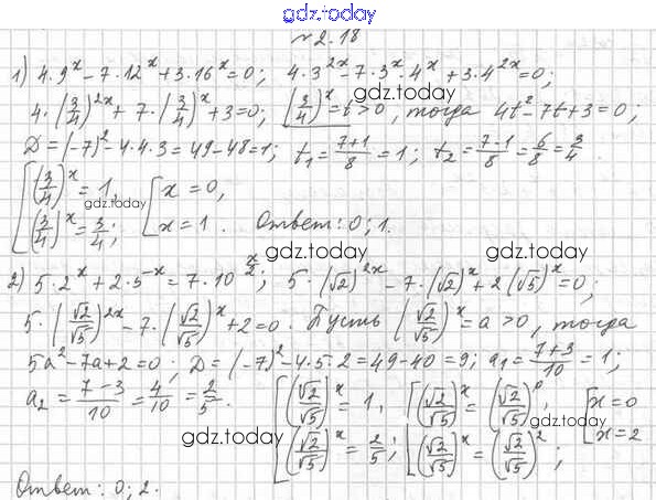 На страницах сайта gdz.today вы найдете учебный и вспомогательный материал, направленный на улучшения знаний школьной программы. ГДЗ - онлайн мир знаний ГДЗ. §2 2.18 Учебнику по Алгебре для 11 класса Мерзляк, Номировский Базовый и профильный уровни Вентана-граф Алгоритм успеха 2017
