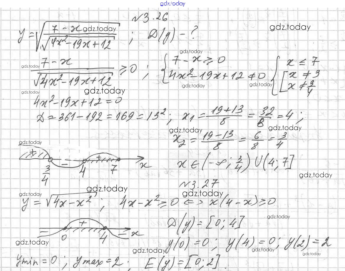 На страницах сайта gdz.today вы найдете учебный и вспомогательный материал, направленный на улучшения знаний школьной программы. ГДЗ - онлайн мир знаний ГДЗ. §3 3.26 Учебнику по Алгебре для 11 класса Мерзляк, Номировский Базовый и профильный уровни Вентана-граф Алгоритм успеха 2017