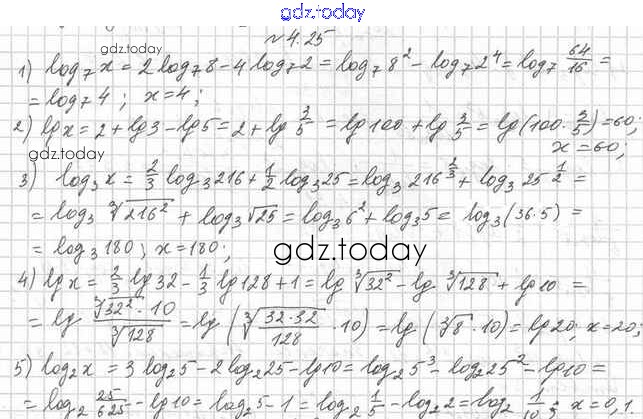 Ответы к ГДЗ. §4 4.25 Учебнику по Алгебре для 11 класса Мерзляк, Номировский Базовый и профильный уровни Вентана-граф Алгоритм успеха 2017