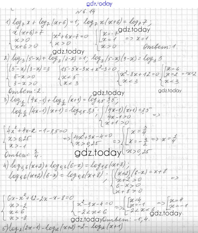 На страницах сайта gdz.today вы найдете учебный и вспомогательный материал, направленный на улучшения знаний школьной программы. ГДЗ - онлайн мир знаний ГДЗ. §6 6.14 Учебнику по Алгебре для 11 класса Мерзляк, Номировский Базовый и профильный уровни Вентана-граф Алгоритм успеха 2017